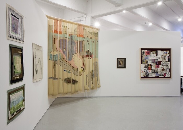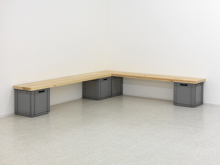 Unlike the Armory Show, which can look like any other fair, Independent, with its open floor plan, always feels different. There is lots of painting here, too, but also much more nuanced work, especially among the galleries who presented single-artist booths. Emanuel Layr, from Vienna, is showing My Epidemic (2015), new works from Lili Reynaud-Dewar: a video of the artist dancing, naked, in an empty palazzo in Venice and next to it a table full of silk scarves printed with images from Reynaud-Dewar’s previous performances, and a collection of excerpted texts on sexuality, publicness, queer theory, and the AIDS crisis. The precious, feminine fabric becomes reading material provoking the viewer to consider her or his vulnerable position when faced with the directness of this artist’s work. Not far away is a vinyl sign on the floor reading “viewer discretion advised: graphic sexual imagery.” Brazilian gallery Mendes Wood has brought the work of f.marquespenteado, and it is a little difficult to look at: behind a woven plastic curtain is a matching game of sorts, between dictionary definitions of prison speak—“booty check,” “butched in” (don’t google these)—and quick drawings on fabric depicting these activities. It checks your alliances, borders, and politics. And it’s shocking, especially in light of the artist’s other works on view, compositions on linen that are hardly sinister. At times it’s too blatant when galleries bring more sellable work to accompany installations at fairs, but in this case it allows the viewer a better understanding of the artist’s depth, and a much-needed break from more graphic work. David Kordansky from Los Angeles gave over his booth to Andrea Büttner, who designed everything from the walls (Brown Wall Painting, 2006) to the bench in the middle (Benches [corner seat], 2010, a wooden top over gray milk crates).
