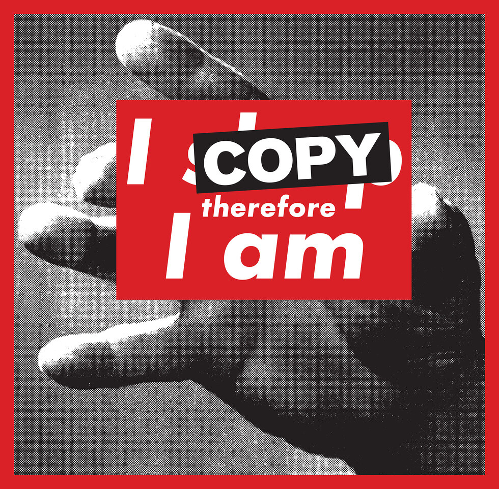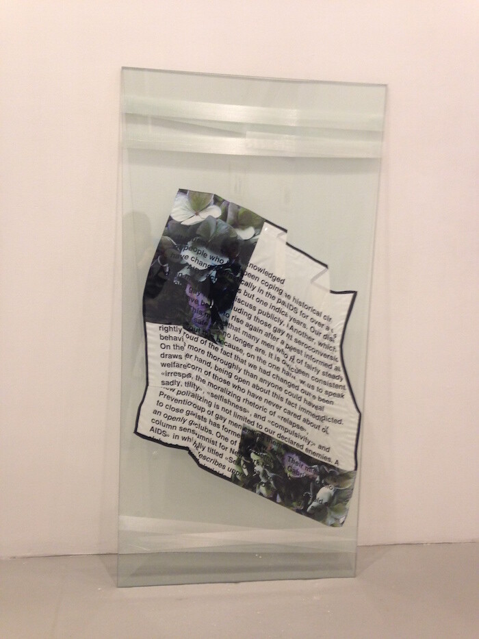 Speaking of the nineteenth century, another trend: a number of works on view at Armory play with direct references to art history. There’s a marble bust (Ingleby Gallery from Edinburgh shows an untitled 2014 piece by Jonathan Owens, where the materials list says it all: “carved nineteenth-century marble bust, with further carving”); a Donald Judd which is actually I Am Broken (2011), a piece Ryan Gander compiled from Ikea shelves, at Johnen Galerie, Berlin; a two-in-one homage to Vladimir Tatlin and Dan Flavin (Bettine Pousttchi’s Double Monument for Flavin and Tatlin XII [2013] at Buchmann Galerie, Berlin, made of a neon tube twisted barriers, the kind used in the streets to control crowds); and a work from Superflex at Los Angeles’s 1301PE which takes on Barbara Kruger’s Untitled (I shop therefore I am) (1987), but has the word COPY pasted to cover “shop,” shifting the meaning of Kruger’s piece to a statement about an updated form of resisting consumer culture: digital copying. These works show artists reconsidering older forms and the way they are applicable in contemporary society, as well as how they can be used as material (both physical and intellectual) with which to work. But it’s also a quick, direct way of creating value: making reference to recognizable work, whose worth has already been asserted.
