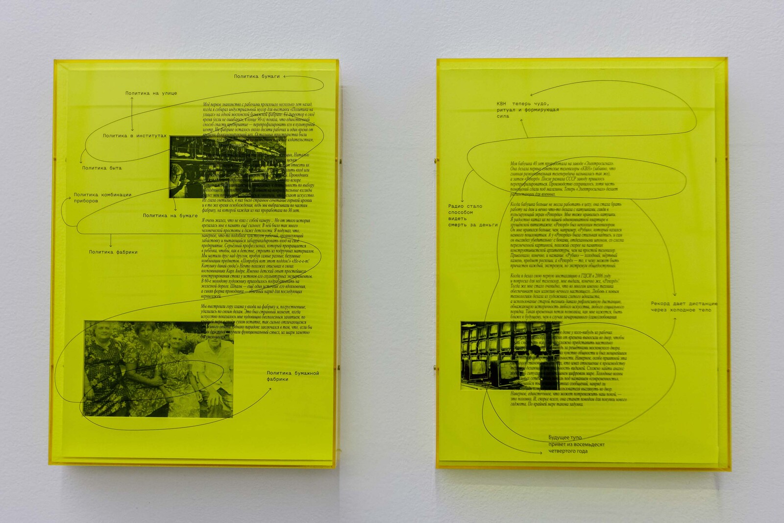 This sci-fi premise is beguiling by itself, but Zhilyaev, nothing if not studious, brings the idea into relation with the wealth of contexts he has explored in the past. Prominent among these is avant-garde museology: an umbrella term for a number of early Soviet practices that seek to recontextualize histories from class standpoints. As a student in Moscow in the late 2000s, Zhilyaev was influenced by what is today called The State Central Museum of Contemporary History of Russia. The exhibition rhetoric employed in that museum—with its mixture of original artefacts, paintings, and historical mise-en-scenes—seemed more contemporary to the artist than any of the shows in the capital’s art institutions, and inspired him to adopt the museum display as a primary medium.