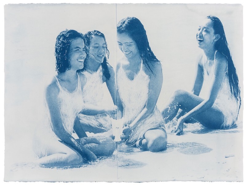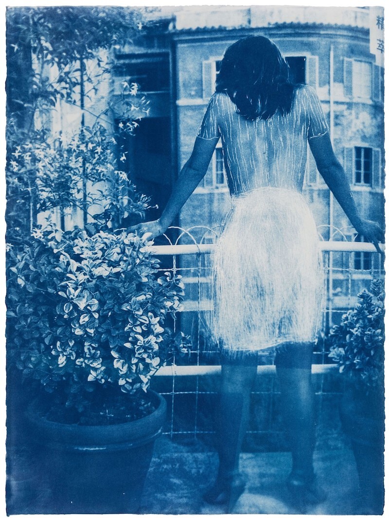 Taking inspiration from a different strand of pin-up culture—that which emerged in post-reform China in the 1980s and ’90s—Ma Qiusha’s “Page” series of cyanotypes (2017-18), at Beijing Commune, is a quiet reflection on female representation in popular culture from a transitional period in modern Chinese history. (Her choice of medium also pays homage to the history of photography by women: Victorian botanist Anna Atkins is commonly regarded as the first woman photographer in the world for her cyanotypes of British algae.) Born in Beijing in 1982, Ma’s practice is largely informed by the ideological gap between her and her parents’ generation, particularly regarding gender perception. Ma folds and reproduces old pin-up photographs as cyanotypes, which gives them a blue tint—a color that signified labor and harmony in pre-reform, socialist China. Echoing Yamaguchi’s illustrations, Ma’s reprints hint at the link between capitalism and the (exploitative) representation of women, but her reflection on these images connote a skeptical view of mass-media femininity that feels particular to her generation.