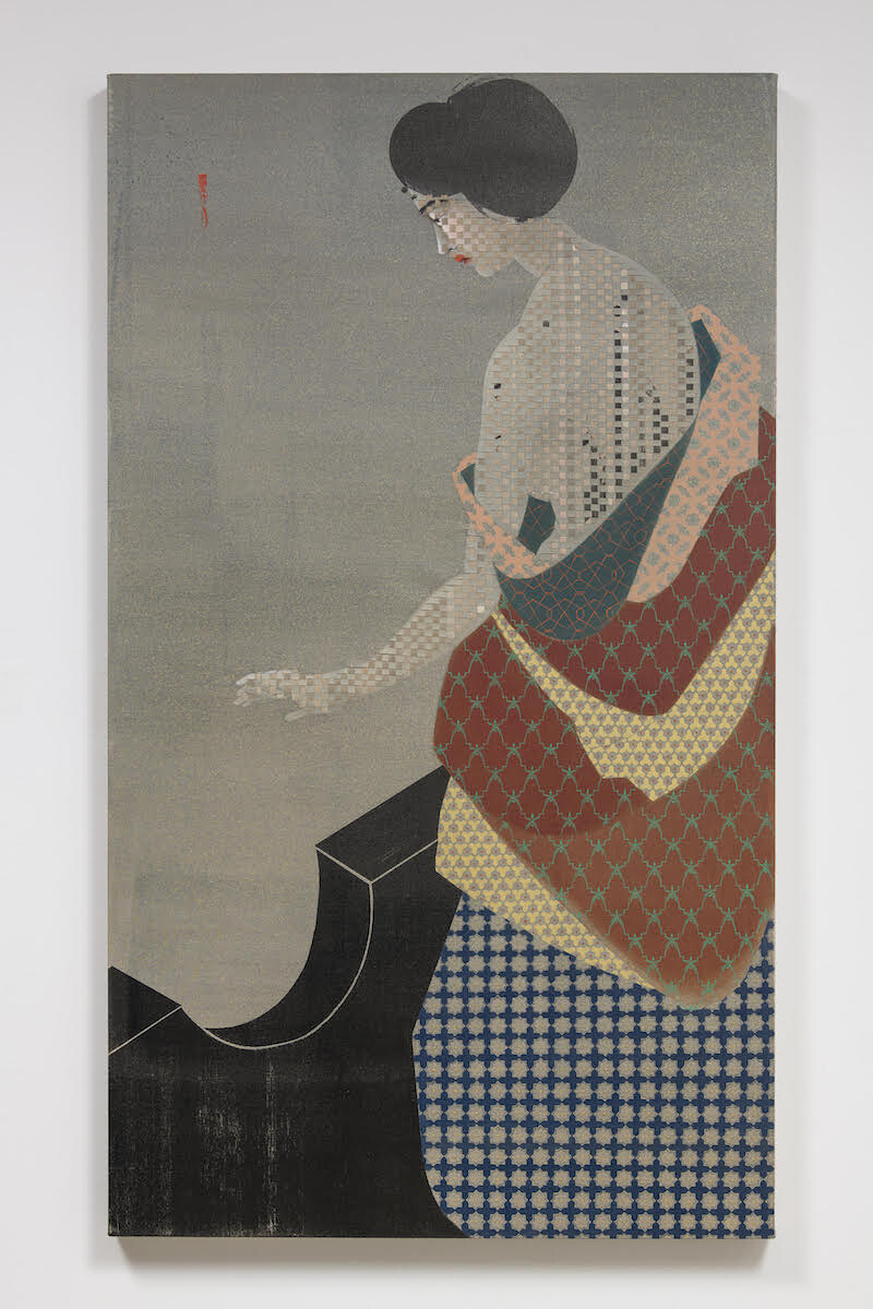 Although shown for the third consecutive year by Nanzuka, Toyko, it is always refreshing to encounter the “Harumi Gals” in Japanese artist Harumi Yamaguchi’s mesmerizing airbrush works. In the Kabinett section, three of her illustrations, from late 1970s to early ’80s, hang in a small room wallpapered with a giant reprint of a work depicting a woman’s mouth, the lips bright red, on the verge of swallowing a UFO against a mountain landscape. Born in 1941, Yamaguchi was inspired by the pin-up culture of the West, and in the 1970s became director of illustration for PARCO, a flagship department store in Tokyo’s Shibuya district that had a strong female focus, both in terms of creative leadership and target consumers. The women in Yamaguchi’s works, such as the one posing sensuously in a nightgown in Satin Woman (1978), are chic, displayed for consumption; but they are also tough, their skins rendered steel-like, their gazes more rebellious than enticing, their bodies more agile than docile. The commercial nature of Yamaguchi’s works complicates but does not negate their place in the women’s liberation movement in postwar—or indeed today’s—Japan. They feel especially prophetic in the context of the fair—don’t they look just like that girl clad in Versace walking past the booth in stilettos, looking for something to buy?