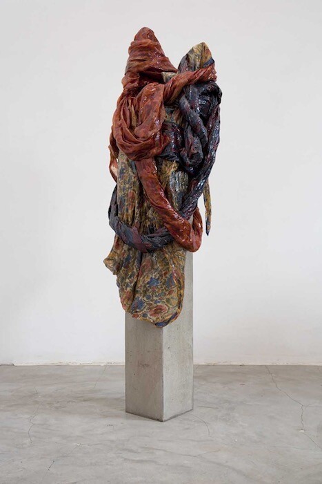 The profound nature of one’s own personhood—the identities one is assigned, the ancestral narratives one adopts—were explored with a gentler and necessary sensitivity, too, at Gallery SKE, the only Indian gallery at the fair. A sculpture by New Delhi-based Bharti Kher—My friend un-named (2014)—depicts the traditional Indian sari frozen in time: draped over concrete, the saris have been covered in resin, distilled and unmoving. Kher seems to simultaneously examine and revere this garment, inextricable from Indian tradition, simultaneously indicative of religion and race and individuality.