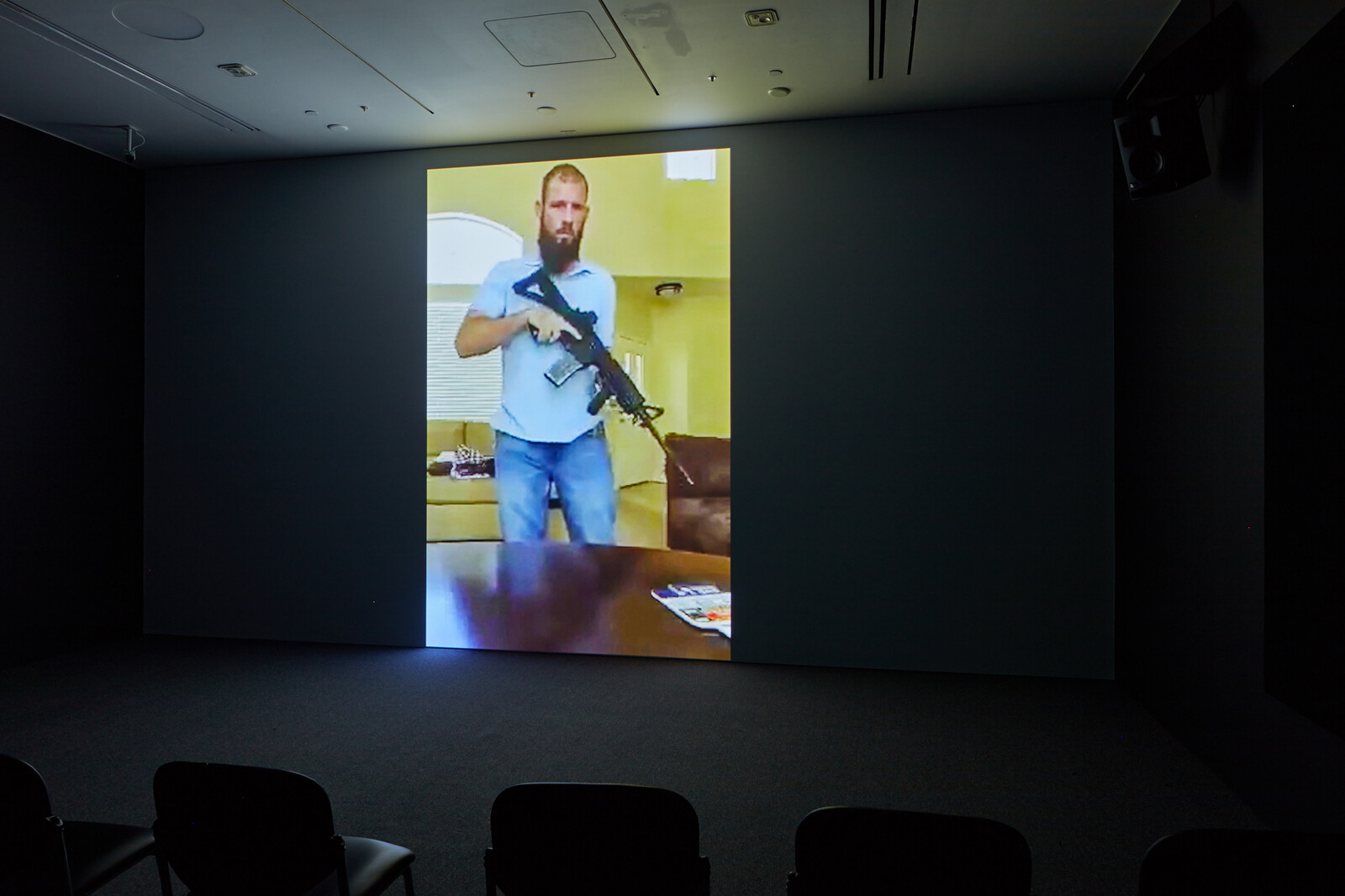 Still, this is a work whose other players include the white supremacist Dylann Roof, who in 2015 murdered nine people at a Bible study at a church in Charleston, South Carolina; Malcolm McDowell in A Clockwork Orange (1971); Alana Thompson aka Honey Boo Boo; Val Kilmer in the music video for Oneohtrix Point Never’s “Animals” (2016); Erykah Badu; an animated Iggy Pop; O.J. Simpson; and a handful of unknowns, from blood-thirsty US military personnel to blood-chilling gun enthusiasts, German “cybergoths,” and viral video stars. (Cue Jeremy Fry, a white Celtics fan in an ecstatic Bon Jovi lip-synch––an ecstasy paralleled in the rapturous subjects of Jafa’s previous video, akingdoncomethas (2018), 100 minutes of footage of black Christian church services.)