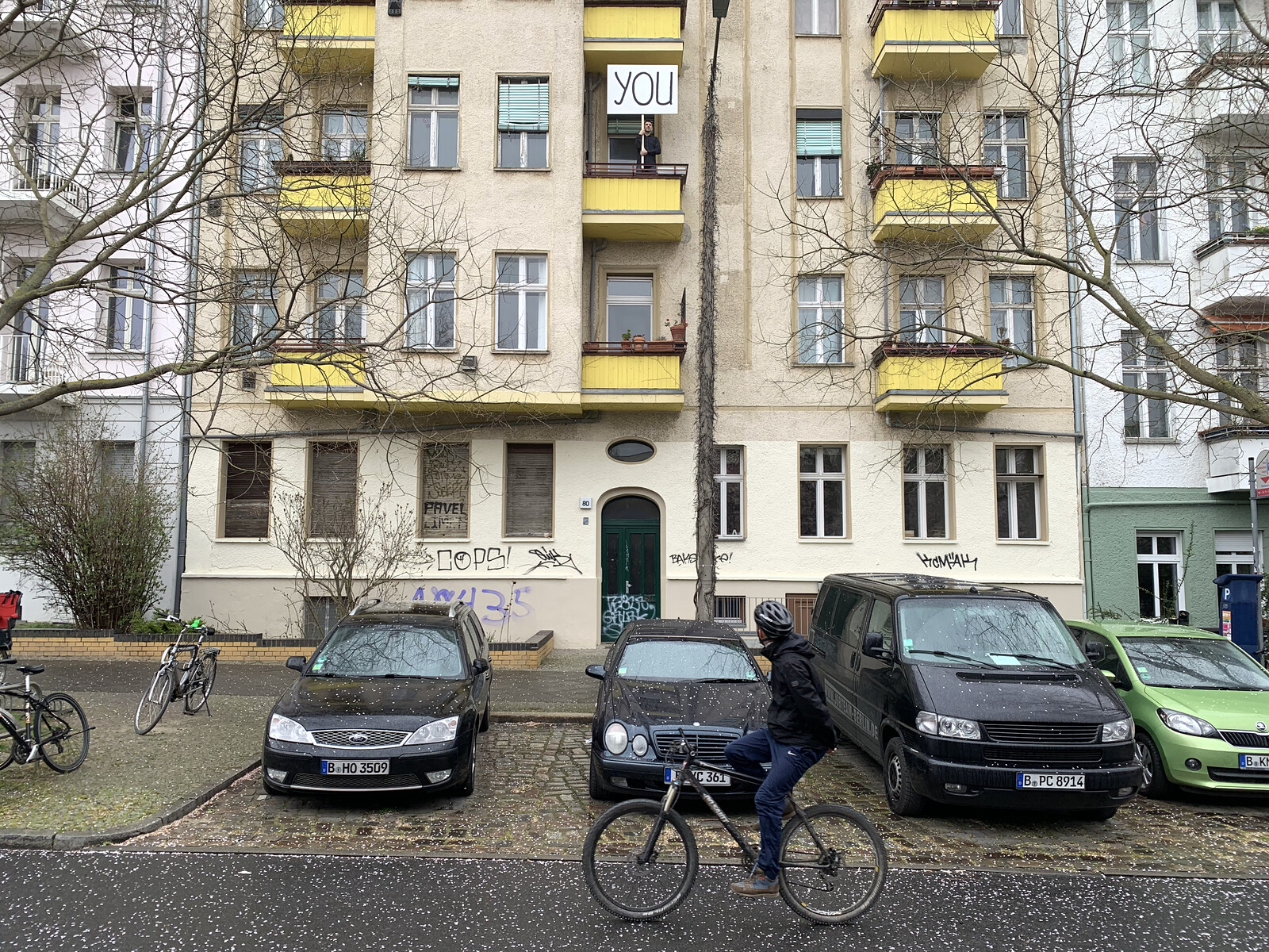 In Warsaw, Paweł Żukowski’s Cardboards asked 40 people to display on their balconies cardboard signs with Polish slogans translating as “we will manage,” “we demand tests,” or “let’s postpone the elections.” The accompanying text on Instagram stated that the action went “viral” and that other people had made “self-made banners joining his actions,” but a question in the comments section to clarify whether they had “spontaneously replicated” the gesture had not been answered at time of this article’s publication four weeks later. Thinking of the millions in Saõ Paulo and Rio de Janeiro who banged pots on their balconies during a televised address by President Bolsonaro, I have to say I prefer ordinary citizens demonstrating for themselves to artists claiming authorship over protest.