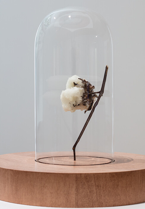 Where to begin? Where else but at this stage? A cotton boll embalmed in a bell jar like the Disney rose in Beauty and the Beast (1991): Aria Dean’s Dead Zone (1) (2017) gives the rose’s place to a white commodity once harvested by black people made commodities. The cotton stands there like a badly conserved museum piece that still reeks of shame. But there is a current charge, too: viewers can take their photos, but they’ll have to wait to post them. Under the bell jar’s oversized base, Dean has hidden a signal jammer modeled on the ones Beyoncé’s bodyguards use to scramble any cell phone in the star’s radius. We are at the stage where a celebrity needs military-grade technology to stage-manage their image—and meanwhile in the ongoing spree of police murdering black Americans, video evidence earns no justice, only spectacle.