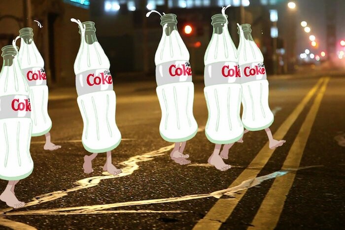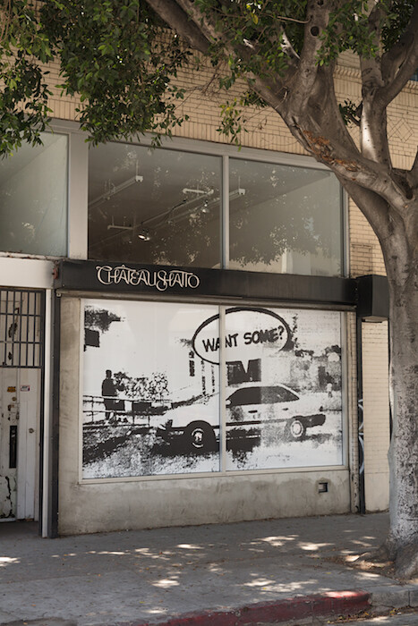 Dean’s is the first piece inside gallery Chateau Shatto for this summer of 2017; this is a topical group show, and the topic is a gut check of American exceptionalism. At this stage! The phrase suggests a sequence, a disease—progression, if not progress—like the shot holding on a film of a skyscraper in Sturtevant ‘Warhol Empire State’ (1972). In Sturtevant’s revision the Empire the building stands for is laminated to the Empire of Andy Warhol, an ambivalent, postmodern reverie whose scope ranges from race riots to mass goods, celebrity- and death-spectacle included. Jordan Wolfson’s 2009 video Con Leche plays on a monitor just behind the Sturtevant. Warholish ranks of animated glass Diet Coke bottles march on little pink feet through footage of a blighted city. Milk sloshes at their mouths—a white liquid where you’d expect a brown one. Control, modulation, and abuse are all of a piece: a female voice actor reads extracts from message boards while a male voice (Wolfson) gives her directions like, “Can you please normalize your speech.” At one point the work’s racial undertones spill over, and the voiceover describes—practically in a panic—that despite going to school with “black folks” she’s “never been part of what I’d consider a friend relationship with someone black.” “Can you pause? Thank you,” says Wolfson—“Can you please decrease your volume.” At this stage, time for an honest display of our grossest contradictions.