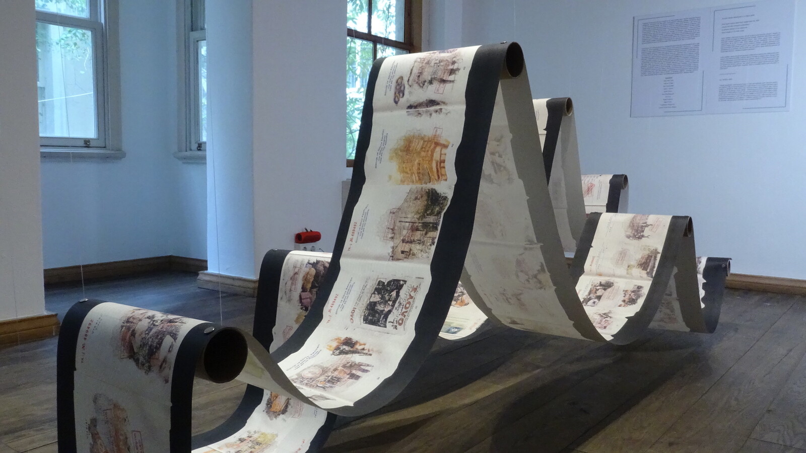 How do personal memories become fragments of a political narrative? How can images guide us back through the past? A double-exposed print-out of private and political histories, Aykan Safoğlu’s installation Revolving Dreams (Athens/Istanbul, May 4-7, 2006) (all works 2020) features a series of images suspended from invisible threads. Pages from the artist’s old passport, superimposed with photographs from his personal archive, are enlarged and printed on two long scrolls which hang from the ceiling like waves. The work takes its cue from the bus journey Safoğlu (who was born in Turkey and now lives in Berlin) made from Istanbul to Athens in 2006, along with two friends and a group of alter-globalization activists, to participate in the fourth European Social Forum. The event—which marked the artist’s first encounter with discussions around immigration and climate crisis—brought together activists, NGOs, refugees, and environmental and anti-racist movements. Safoğlu revisits photographs taken over those few days in order to contemplate what the participants would transmit to a contemporary audience, for whom these issues have only gained in urgency.