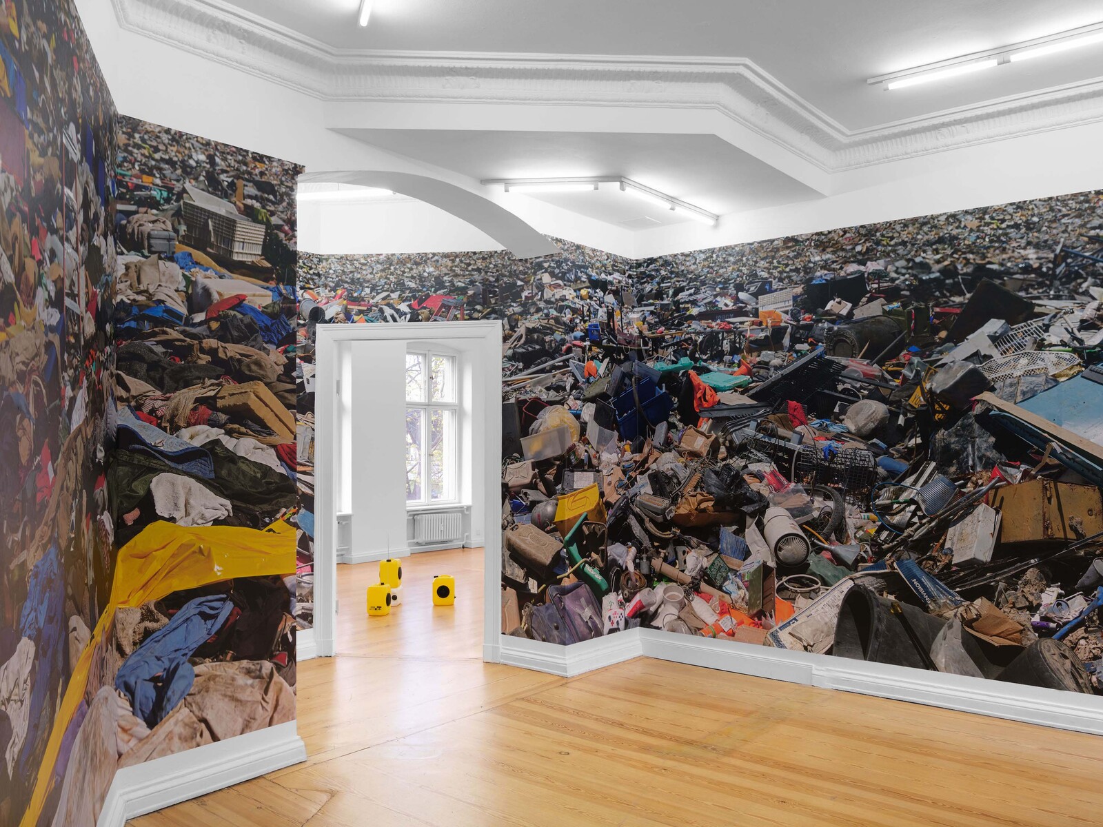 “How then can we clean centuries’ worth of waste?” asks Françoise Vergès, reflecting on the devastation wrought by imperial conquests in the Global South.1 The question hangs over “No Dress Code,” artist Aziz Hazara’s affronting solo exhibition at Berlin’s PSM Gallery, which reflects upon the US military occupation of his native Afghanistan through the prism of trash.