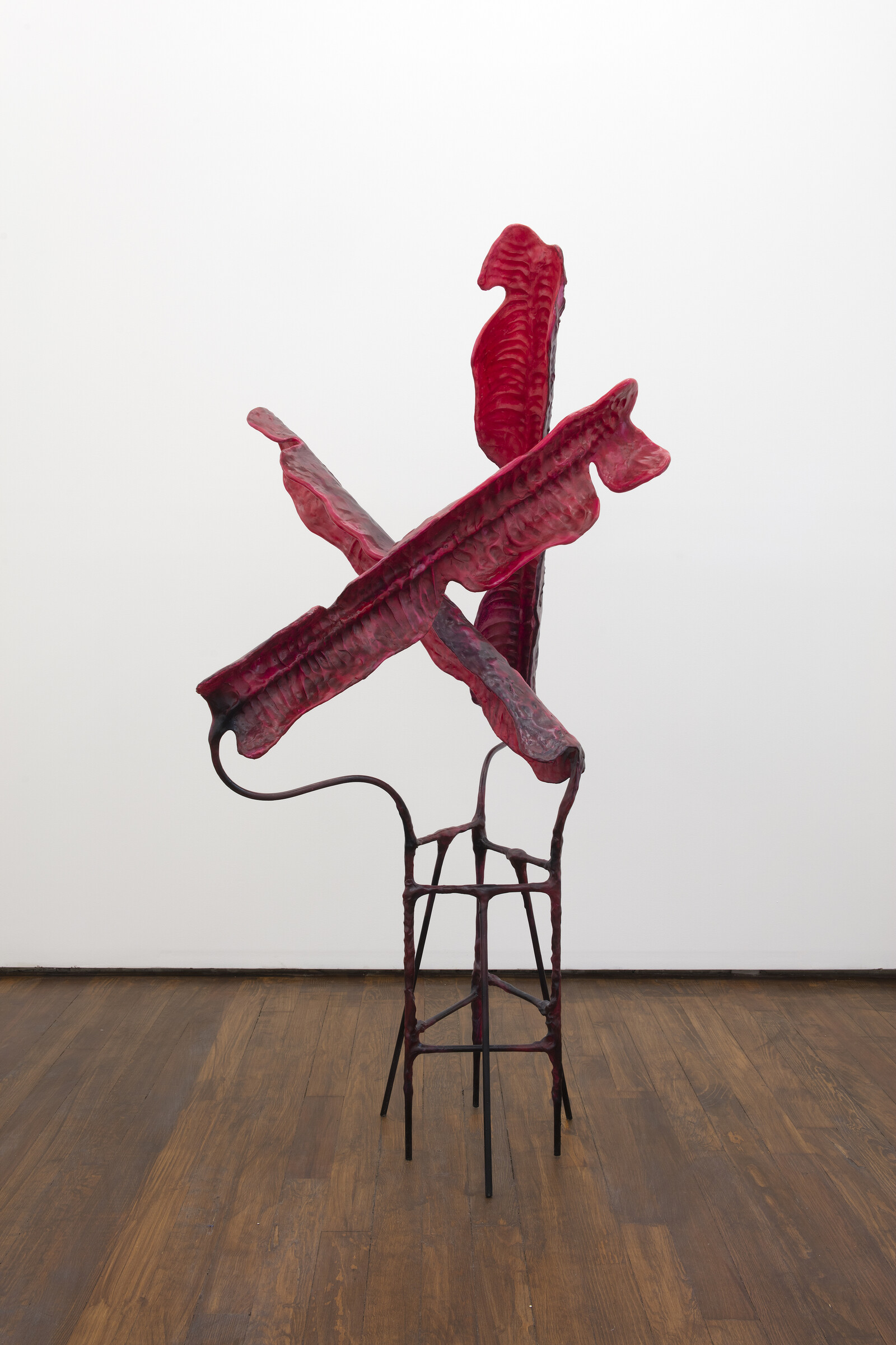 Bayo Alvaro’s recent sculptures—evocative of strange, alien flora—recall Karen Barad’s descriptions of a “queer performativity” of nature.1 In this conception of the natural world, nothing is ever exclusively male or female, animate and inanimate; nor is it simply good or evil. Rather, there is endless potential for change and intra-action. The pieces in Alvaro’s third solo show in Mexico City and his first with Deli—a recently opened branch of the New York gallery—appear laced together in symbiosis, reflecting the ways in which living beings continuously tend towards and transform one another.
