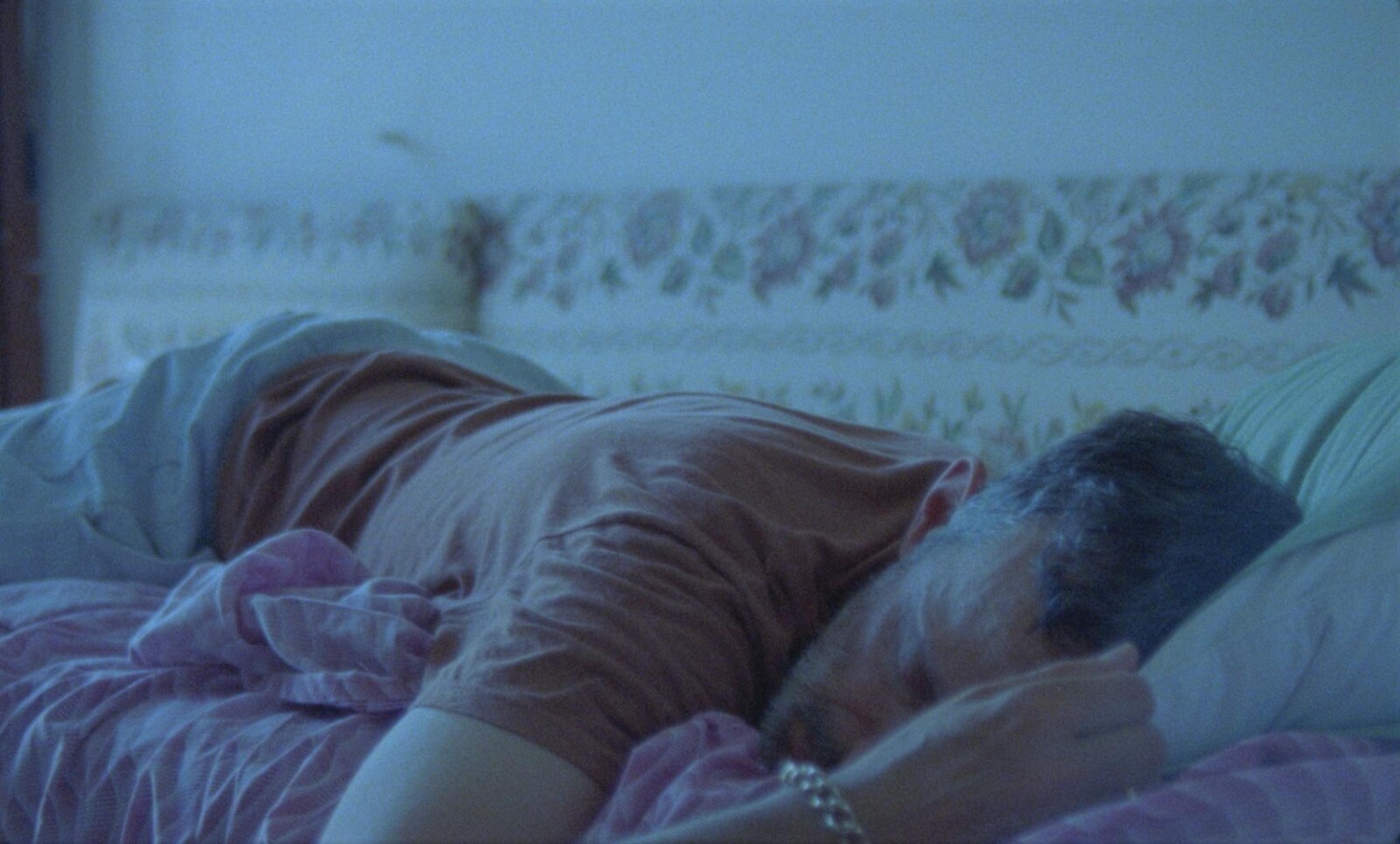 Gibson’s shots proceed with a slowness reminiscent of Béla Tarr or Andrei Tarkovsky, whilst the quadrophonic sound—in contrast with the other films—is played through wall-mounted speakers, separating it from the images and gesturing towards expanded cinema. With Italian voices talking distantly, rain on windows, drums, and traffic noises, there is the sense of the outside world continuing whilst the characters sleep and influencing their dreams—especially those of Gibson herself, in which she talks to Alcestis, the “heroine as subtraction” of Euripides’s play who sacrifices herself for her husband.