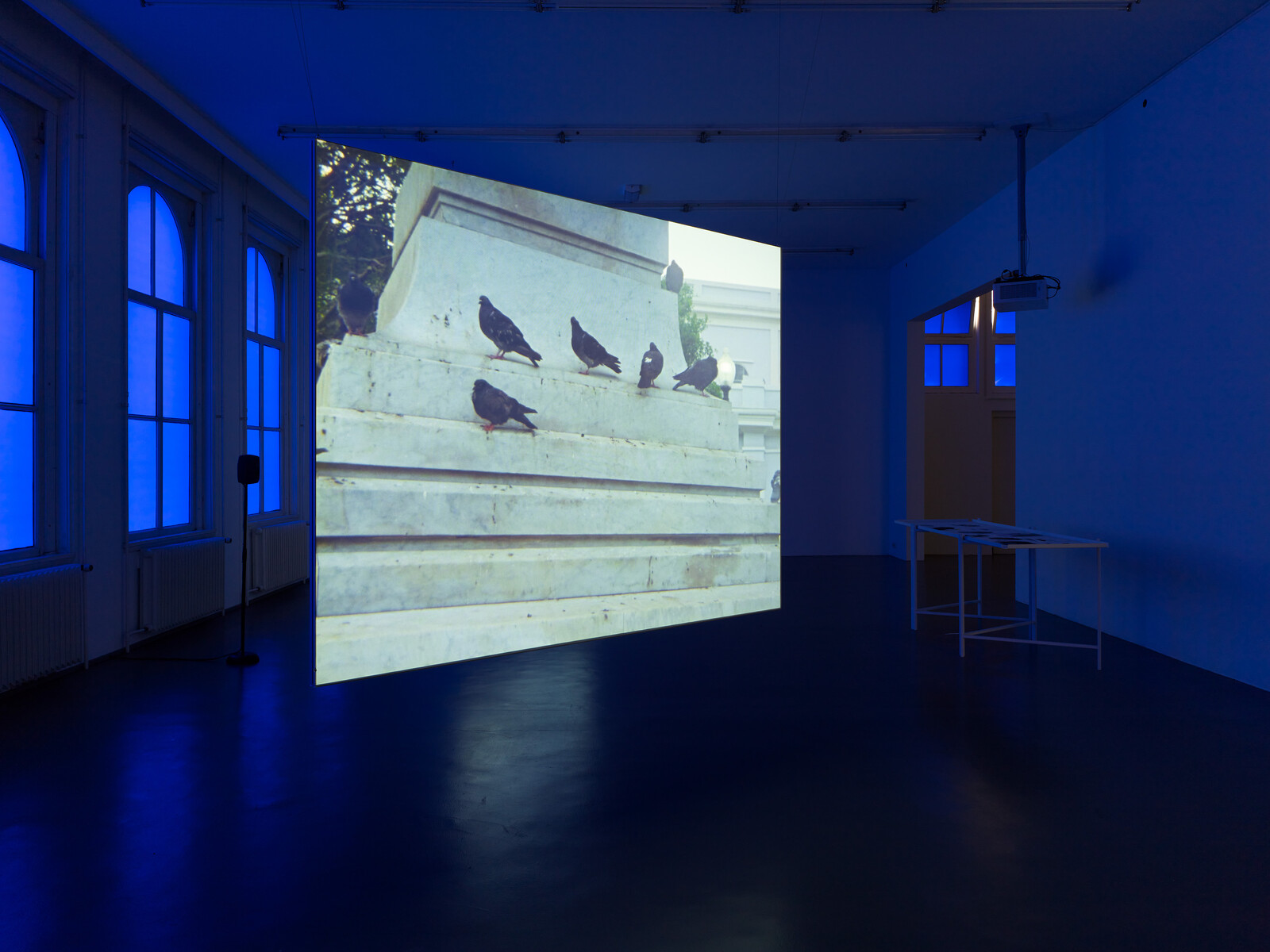 Watching Beatriz Santiago Muñoz’s silent 16mm film Otros usos [Other uses] (2014) is like looking into a kaleidoscope made with old snapshots too nondescript to make it into an album but nonetheless strangely fascinating. A composite image of four shots of a tranquil sea, each aligned to the edges of the frame, spins in a circle. As they oscillate, the distant shoreline in each shot tilts and merges with the next. The anachronistic sound of the projector, installed on a pedestal in the gallery, combines with the faint heat produced by the machine to heighten the body’s senses, like the effect of ASMR. I feel that Muñoz wants me, the viewer, to feel disoriented, employing a combination of the images’ banality and their movement to lull me into a dream state. They want to suspend my desire for narrative resolution and a fixed horizon.