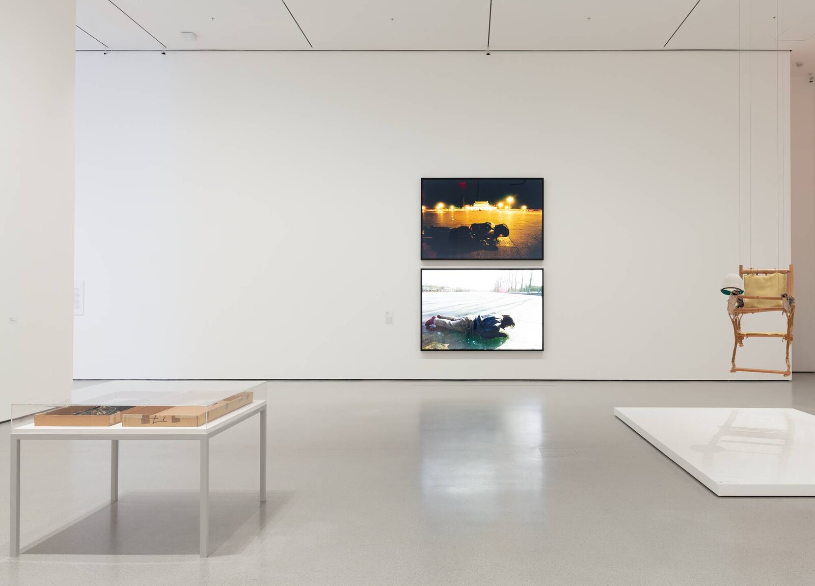 In the sleek “Tiananmen” gallery hang, the inclusion of Xiao Lu’s Dialogue, documented here as a lone photograph, initially appears exhilarating. In February 1989, the artist spontaneously fired a gun at her installation during the opening reception for the group exhibition “China/Avant-Garde” at Beijing’s China National Art Gallery (now known as the National Art Museum of China).3 Yet the crucial parameters that defined and complicated Dialogue—who procured the gun; who photographed the gunshot, co-authoring the work; the messiness of its intention, definition, and interpretation, including its engagement with feminist discourse—are omitted in the gallery label, reducing it to an anti-authoritarian spectacle that neatly aligns with the wall text’s assertion of the “insurgent spirit” of “the period marked by the 1989 student protests in Tiananmen Square.”