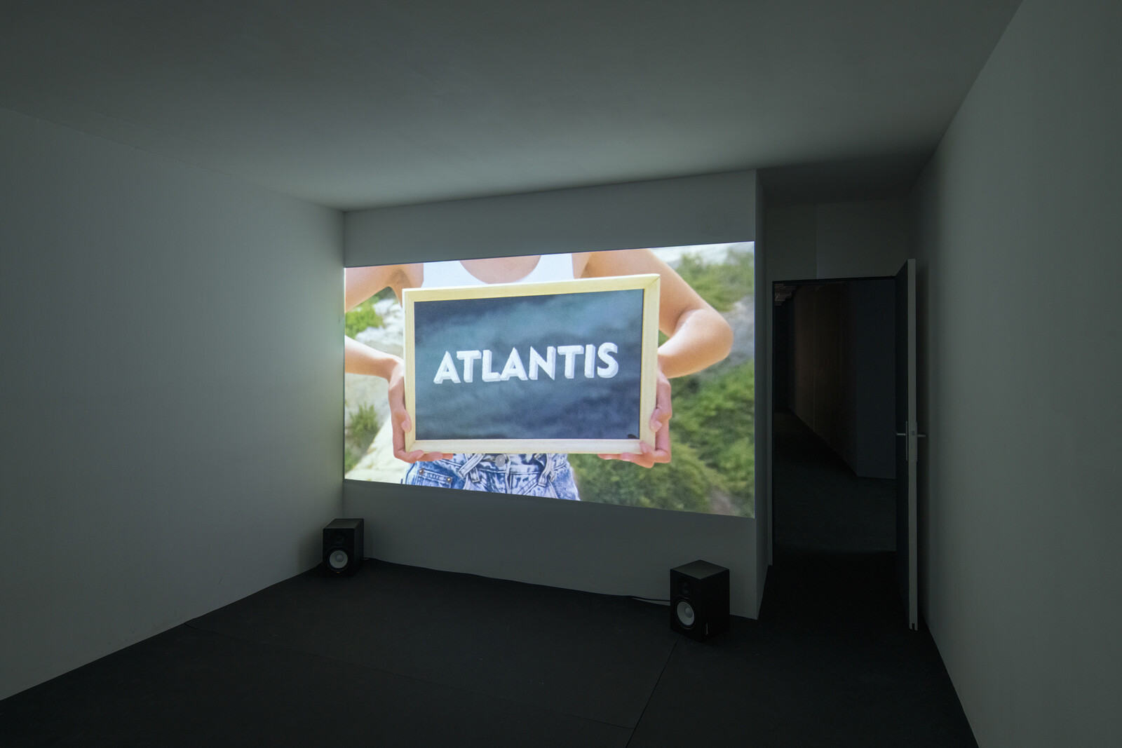 This is not the first time that Russell has set out to find a fictional land. In his film Atlantis (2014), projected in a separate room in the show, the artist travelled to Malta to look for the legendary drowned continent, the social and natural reality of the Mediterranean island mirroring and distorting the imaginary of the utopic island society. Running in parallel to the documentation of Russell’s two summer excursions is a new work, Conjuring (2020). This long, black-and-white video projection transforms the sensual and smooth colors, textures, and rhythms of Tuovinen’s journey into an abstract non-place that cannot be grasped but only subliminally perceived through rhythm and sound. If the quest for lands documented in La montagne invisible and Atlantis was shattered into a quasi-cubist interplay of simultaneities and assemblages, with Conjuring it becomes a hallucinatory trip that can only unfold in the viewers’ minds.