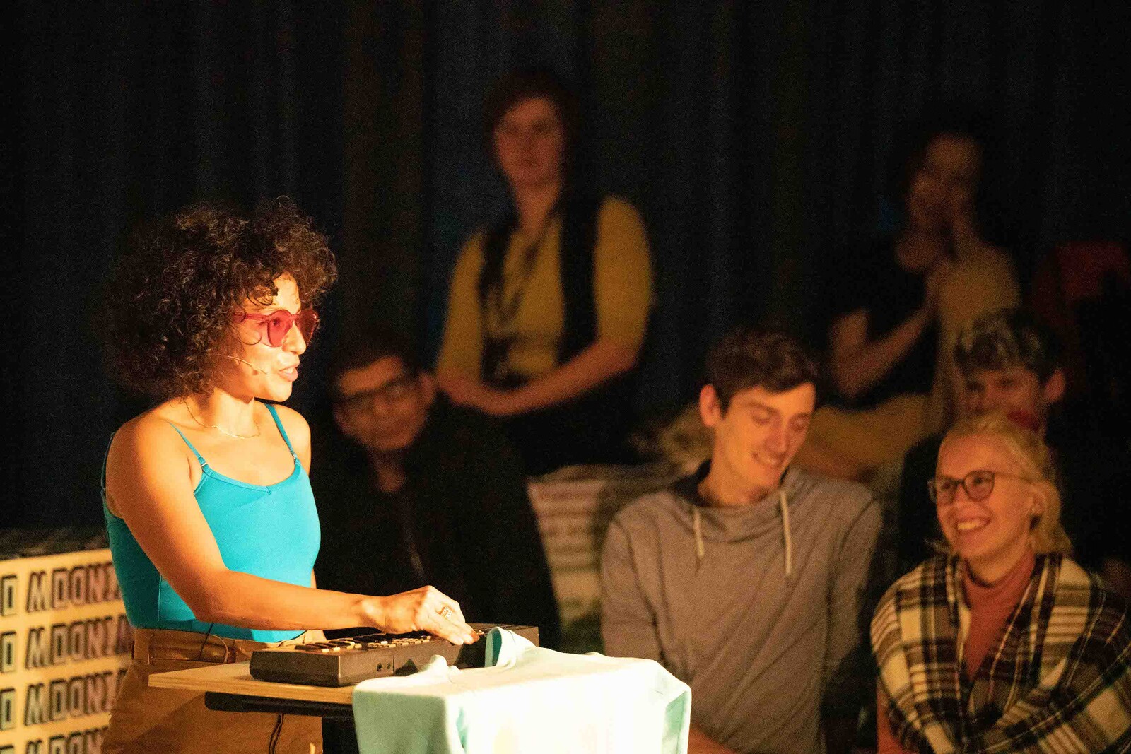 To be fair, this festival of gloom vibe was mostly limited to the exhibitions. Several of the live performances over the opening days were full of raw, fun, and energetic moments, even as they were bound with agitprop. I was deeply inspired, for example, by the marathon event of “The Parliament of Bodies,” which included over nine hours of talks, performances, and audiovisual presentations buoyed by expressions of humor, anger, solidarity, and care. Another spark appeared in the restaged, resurrected Aire del Mar [Sea Air] (1988–94/2019), a multimedia performance by late New Zealand artist Darcy Lange and his partner and collaborator Maria Snijders.
