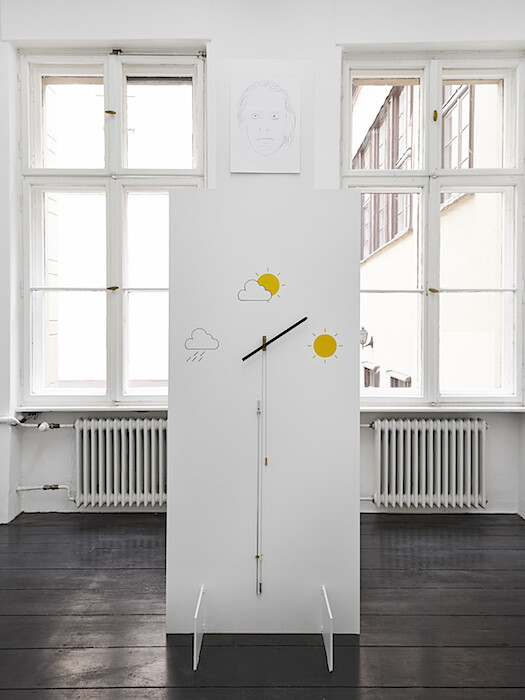 De Gruyter and Thys’s exhibition “Pantelleria” at Bortolozzi was my first this September in Berlin. The title is also the name of an volcanic island in the Strait of Sicily where A Bigger Splash (2015), by Italian filmmaker Luca Guadagnino, was filmed. A promotional image for the show was a modernist sun that suggested a clock, a good pairing for the end of the summer. The show itself was nothing like the Mediterranean, although there are paintings of beach balls and rain umbrellas that might be used in the sun, both subjects depicted with a stark white background, isolated so as to make them look ready for online shopping. Appropriate again, because of course living in Germany makes spending time in the sun something of a supply-chain thing: we travel to get it, and therefore tolerate the traps of tourism and dodge the long-term economic strains that come with living in those southern places we travel to. One work, Compass White Element (2016)—made with the artists’ signature steel, fabricated to look like paperboard—points north.