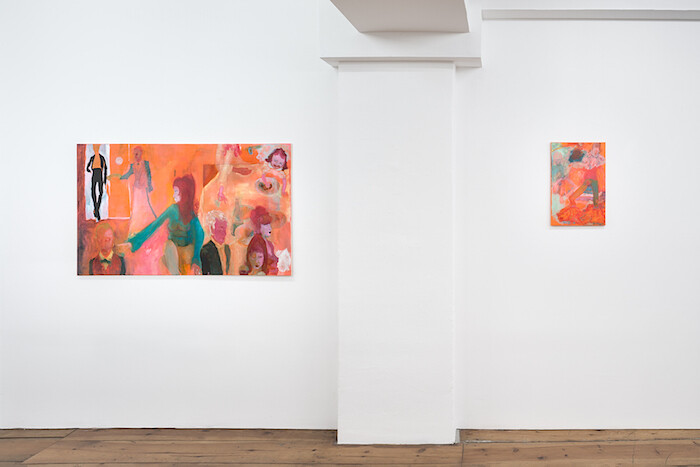 The next day I went to the opening of American artist Georgia Gardner Gray’s play Schaumstoff Laden at ACUD in Mitte, where she also showed new paintings and sculptures. Gray’s paintings are fucked up: brightly colored and dark-themed rococo renditions of togetherness today, they’re like expired fêtes galantes basking in bleeding mascara. One small painting, Car Crash (2016), is a deadly depiction, while the characters in the other pictures seem to care less about such events, even if they’re happening right in front of their eyes, which peer not at you but in your general direction. Whether accidental or self-inflicted, catastrophe is everywhere, and repression and bliss are the only tools we have to cope.