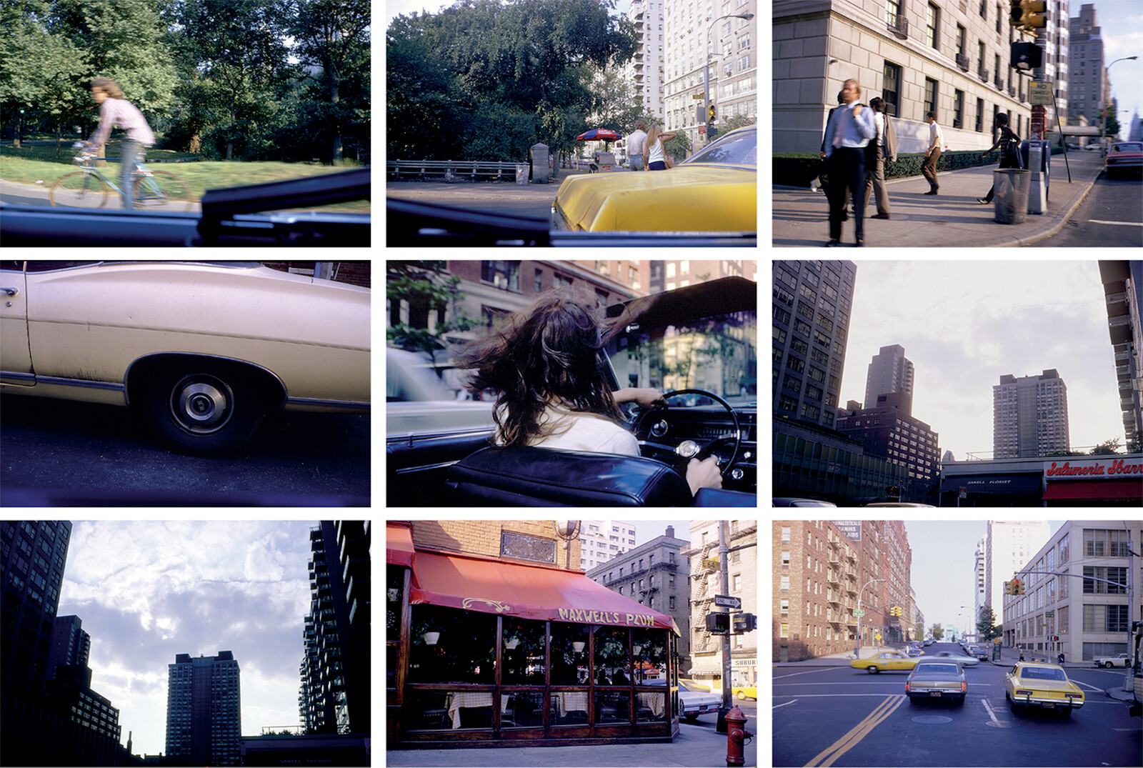 For the month of July 1971, the 26-year-old poet kept a stream-of-consciousness journal and shot a roll of 35mm Kodachrome slide film every day. When the month was up, she projected the slides and supplemented her original observations with new details taken from the images—casual scenes of everyday life, from her lover in the driver’s seat of a car to nature walks and late-night chats with fellow artists. Memory, the completed work, comprised a grid of 1,116 photographs produced from the slides, and a six-hour recording of Mayer’s words. Village Voice critic A. D. Coleman wrote that the piece “explores photography not as art but as a tool which has extended our vision in ways we have yet to comprehend.”2 Although Mayer published the Memory text in 1975, her installation wasn’t exhibited again in its original form until 2017 at CANADA gallery, New York, where the work found a new audience interested in avant-garde first-person narrative. I was among them. I remember mostly Mayer’s lulling voice, and the images showing a downtown Manhattan emptied of people—a state that three years ago was nearly impossible to imagine, but now seems like an eerie harbinger of the current moment.