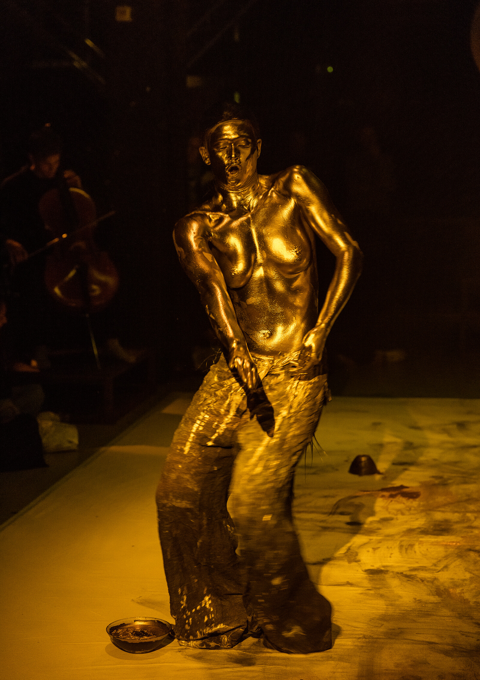 Mining is also the subject of Mangeurs de cuivre [Copper eaters] (2016), a film by Bodil Furu, where the extraction of copper and obliteration of the natural landscape in a rural area of the Democratic Republic of the Congo is framed from different perspectives: fictional mythologies, business-oriented discourse, the consequences of Belgian colonialism, traditional methods, the impact of industrial mining, the contemporary life of villagers, their strategies of negotiation—complexity, instead of simplification, ensues. Also playing on the ironic disruption of “ethnographic” iconography is Bertille Bak’s Usine à divertissement [Entertainment factory] (2016), a surreal three-channel video where the impact of mass tourism on three “authentic” indigenous communities in Camargue, Morocco, and Thailand is staged as a series of grotesque, camera-friendly tableaux vivants. How to resist the obligation to perform is also the subject of Drag Drag Solo (2016) by Cally Spooner, an installation comprising a small loudspeaker attached to the wall where the voices of Oprah Winfrey and Ivanka Trump discuss management and maximization of “performativity,” and a suspended screen, cutting the room in two, where a young dancer warms up, over and over again, as if to prepare herself for an imminent exploit. While frustrating viewers’ expectations, Spooner choreographs very precisely their movement in space.