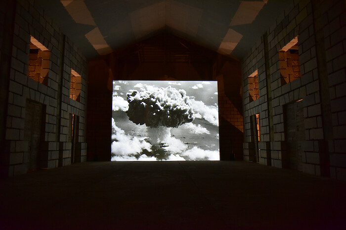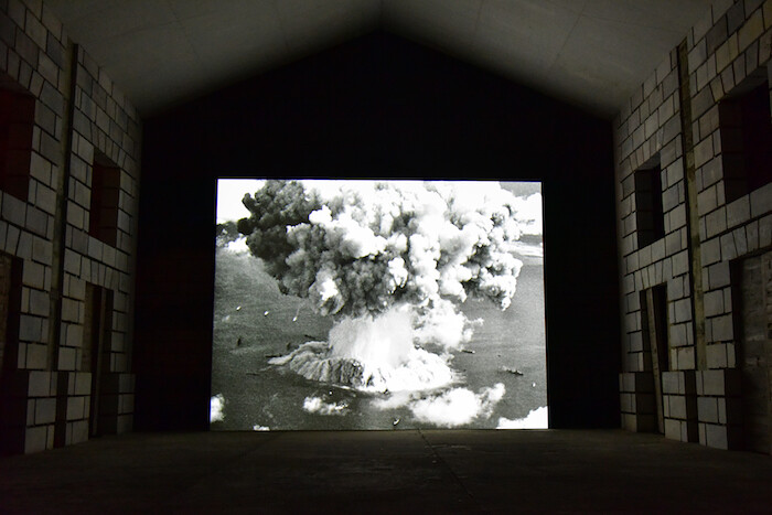 CROSSROADS (1976) is projected in a reconstructed church in Bellas Artes’ Las Casas Filipinas de Acuzar in Bataan, a Disney-esque heritage resort three hours from Manila. It is a pretty, if somewhat artificial, site for displaying art, which highlights the strong contrast between Conner’s contrarian sensibility and Manila’s proliferation of commercial galleries and shopping malls. Nevertheless, this horrifying yet beautiful film, which consists of 27 shots of the underwater nuclear bomb test at Bikini Atoll on July 25, 1946, feels apt in the broader context of twentieth-century Filipino history: the secret stockpiling of American nuclear warheads during the Cold War under Ferdinand Marcos’s regime, for example. More recently, over the Philippines and Southeast Asia more widely, North Korea’s nuclear missile tests have sent political and economic shockwaves through the archipelago. Such events affirm the universal relevance of Bruce Conner’s prophetic work.