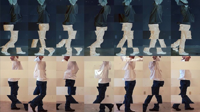 (1)That early piece was preceded by and may have been provoked by his earlier related video titled Walking Around the Perimeter of a Square in an Exaggerated Manner (1967). (2)The two installations complement each other. Where, at Sperone Westwater, Nauman’s image in the projections is rendered in positive while walking backwards and negative while walking forwards, the opposite applies at the Philadelphia Museum of Art (the exhibition runs September 18, 2016–January 8, 2017). (3)Nauman’s Body Pressure (1974)—a performance in which he pushed his body against a plate of glass, while thinking (as he noted at the time) of “an image of yourself on the opposite side … pressing against the wall very hard”—was the first of Marina Abramović’s “Seven Easy Pieces” (2005) at the Guggenheim, in which she re-enacted seven historically significant early works of performance art. With the Contrapposto studies, Nauman joins a number of twenty-first-century artists who have turned to remakes. As time stopped progressing when the twentieth-century faith in a glorious future ceased to be believable, it skidded to a stop in countless works as video loops replaced linear narrative and “Make it Again” became more relevant than “Make it New.” While Abramovic’s “Seven Easy Pieces” may have seemed self-serving and Barney’s current video replay (“Facility of DECLINE” at Gladstone Gallery, reviewed for art-agenda by Thyrza Nichols Goodeve on October 14, 2016) with props from the 1991 exhibition that launched his career might be disappointing for those who saw the original performance (in which Barney, naked in a harness, navigated the ceiling using ice-clamping screws), Nauman’s elaborately simple and infinitely complex remake carries its original to a satisfying conclusion.