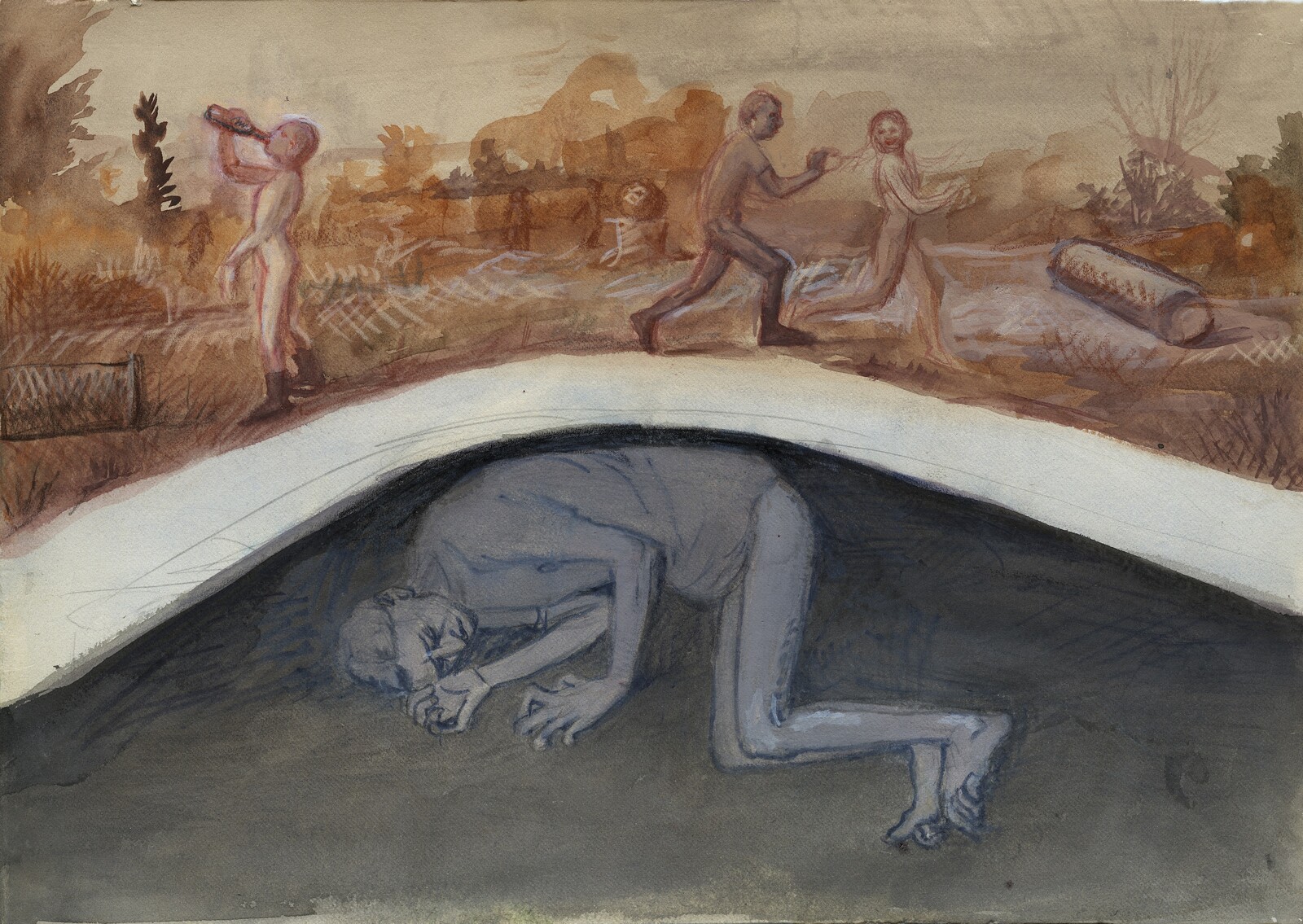 Schulz’s artistry diffuses a mesmerizing charm over the viewers. One cannot help but admire the finesse with which he captured subtle facial expressions, and the careful, yet purposeful, gestures of his microcosm’s inhabitants. Yet the drawings cannot be viewed today as a purely aesthetic phenomena: their elegance starkly contrasts with the horrific reality of Schulz’s death. Even though they are not here framed as such Schulz’s drawings stand as mute reminders of the gruesome consequences of wars past and present. But furthermore, the transgressive expressions of a private desire produced almost a hundred years ago still challenge the destructive patriarchal matrix reigning in Poland today.