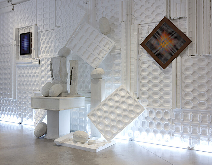 At the Museo de Arte Moderno, we find another proposal that delves into new ways of reading between the lines of a collection. “El presente está encantador” [The present is charming], an extravagant project by Diego Bianchi, posits a new way of putting the museum’s heritage in motion. Bianchi’s installation creates a theatrical and suffocating entrance through a corridor that surrounds the whole space, leading viewers to an area where, among strange sounds and colorful blinking lights, innumerable mannequins, weird anthropomorphic figures made by different discarded materials, disembodied torsos, and found objects emerge as devices, situations, and scaffolding for the circulation, exhibition, and perception of historical pieces. Included in the installation are artworks from the museum collection—from Argentine artists anchored to the modernist tradition such as Norberto Gómez, Alberto Heredia, and Margarita Paksa. Bianchi deals with the collection as an artist, away from historicisms or curatorial prejudices, using historical objects as living elements full of meaning and narrative, that when gathered in the present, generate a new, unprecedented scenario.