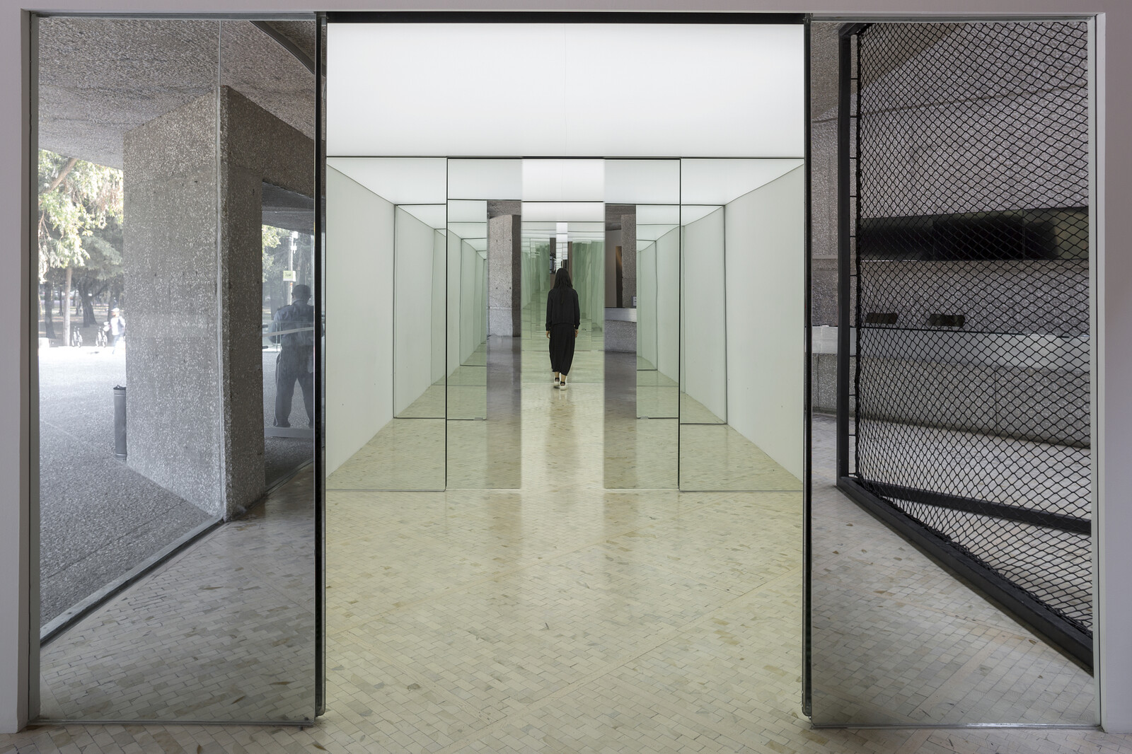 I was required to make a choice upon entering Rufino Tamayo’s famed museum in Chapultepec park in Mexico City. Wait up to an hour (or more) in line to crawl through Decision Tubes (2019), an interconnected web of mesh tunnels suspended in the sundrenched atrium that leads to different areas of the museum, or skip the wait and walk through Seven Sliding Doors (2014), a wall-to-wall mirrored hallway with automatic sliding doors that lead viewers into the main gallery space. These are the introductory artworks that open “Sunday,” Carsten Höller’s first survey in Latin America. Though the works in the exhibition all seem to promise a certain sense of amusement and playfulness, they are at best bewildering and surprisingly not fun.