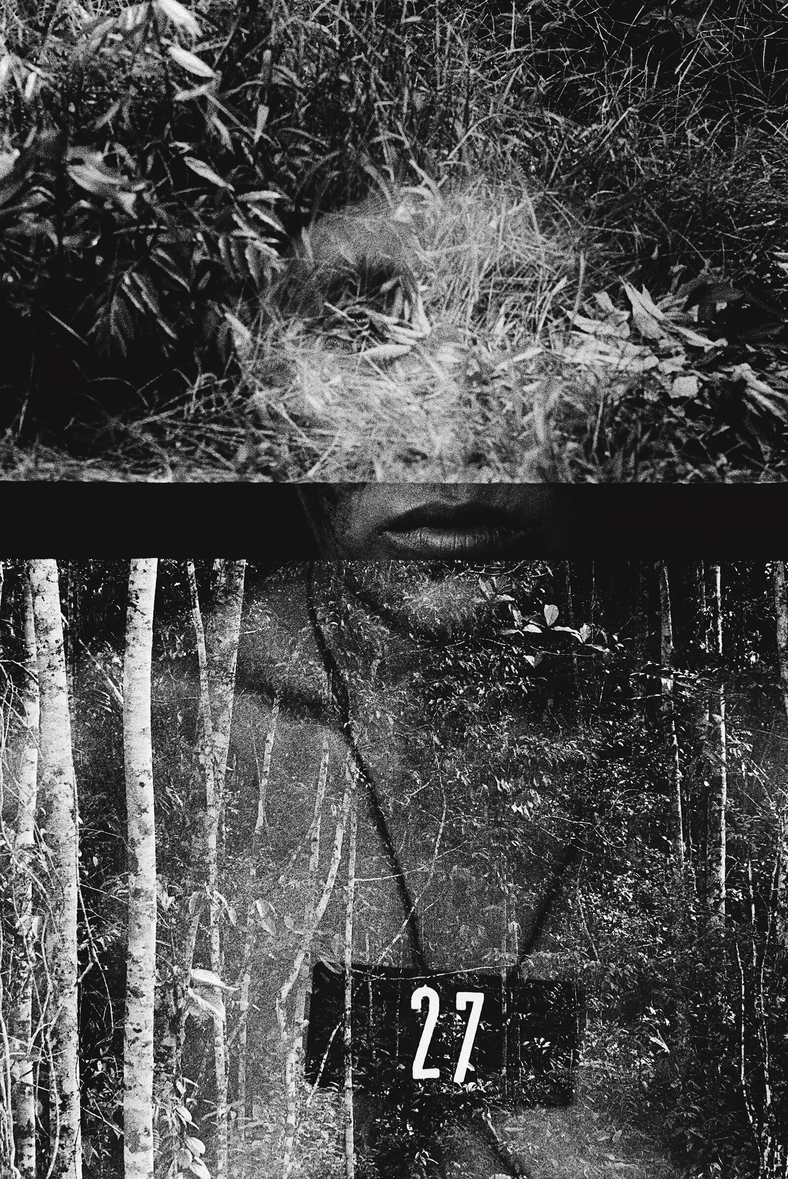 Much of her later work, shown in the exhibition’s second half, is less dreamy and vibrant, and more direct in its appeals. The worsening development situation, and ongoing disregard for indigenous lives, seems to have led to a move to realism over creative practice. At several points over this period, the Brazilian state banned Andujar from visiting the territories on account of her activism, but she repeatedly found her way back. One frustrated series, entitled “Marcados” [Marked], repurposes documentation photos from a 1980 vaccination campaign. The original images were made for the purpose of record, not art, and show Yanomami individuals donning numbered tags around their necks, having just received their shots. In 2009, Andujar returned to these images, noting their similarities to her memory of the tracking and identification of Jewish people in 1940s Europe. The new works—still centered on these mug shots but with overlaid, fragmented images of body parts, community members, and local landscapes—point to the fact that the ethnographic and photorealistic depiction by the West of others has happened in parallel with genocide.