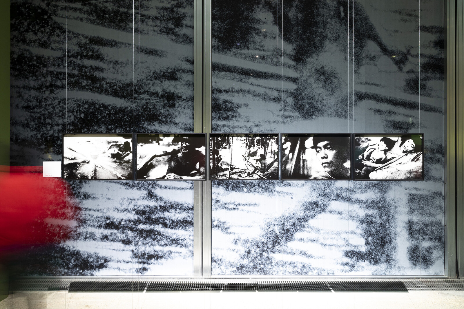 The exhibition frequently narrates Andujar’s work through her own voice, alongside those of two long-time collaborators: anthropologist Bruce Andrews, and Yanomami shaman and activist Davi Kopenawa, whose testimony provides the introductory wall text. Andujar, he explains, “is not Yanomami, but she is a true friend […] she taught me to fight […] she gave me the bow and arrow as a weapon, not for killing whites but for speaking in defense of the Yanomami people.”2 That the exhibition should need to start by asserting legitimacy from the subject is awkward but understandable, given the fraught ethnographic and social documentary artistic constructs—attempts to capture acts of natural daily life among the “other”—that much of the work resembles. However, what would be really something is if the exhibition had also outlined why it needs to assert that particular kind of legitimacy. To do so would acknowledge that the discourses surrounding indigenous agency, culture, and ontology in anthropology and art have, in recent years, begun to comprehend that the language, actors, tools, narrative styles, and aesthetic priorities of visual encounters must be led by the subjects themselves. This shift is due in large part to the art and advocacy of native and indigenous artists.