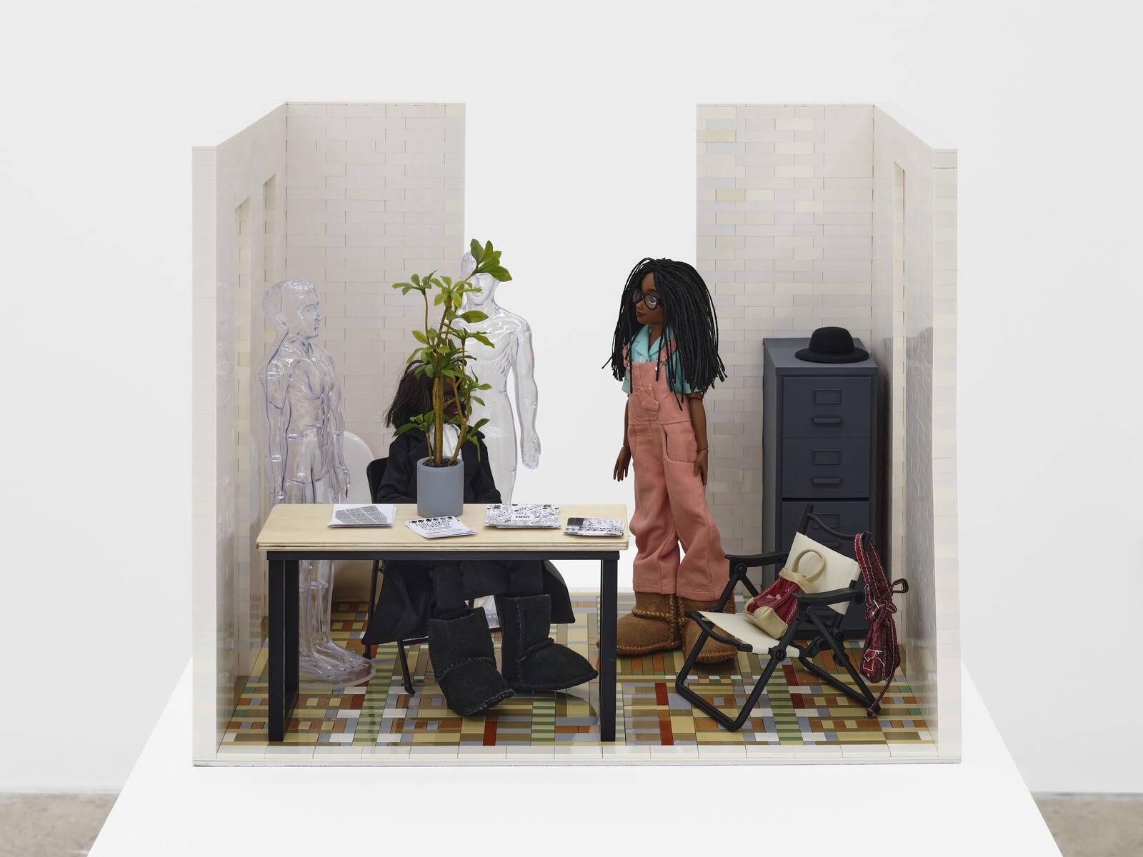 Hollybush Gardens and Gordon Robichaux present a more literal meeting: Janet Olivia Henry and Cynthia Hawkins. Henry’s Cynthia and Janet at JAM on 57th Street (2024) is a diorama reimagining the first time the two artists met at Just Above Midtown gallery in New York. Seeing Henry and Hawkins’s works side-by-side—half a century after JAM was founded by filmmaker and activist Linda Goode Bryant to promote the work of artists of color—is testament to the lasting impact a gallery and a community space can make.
