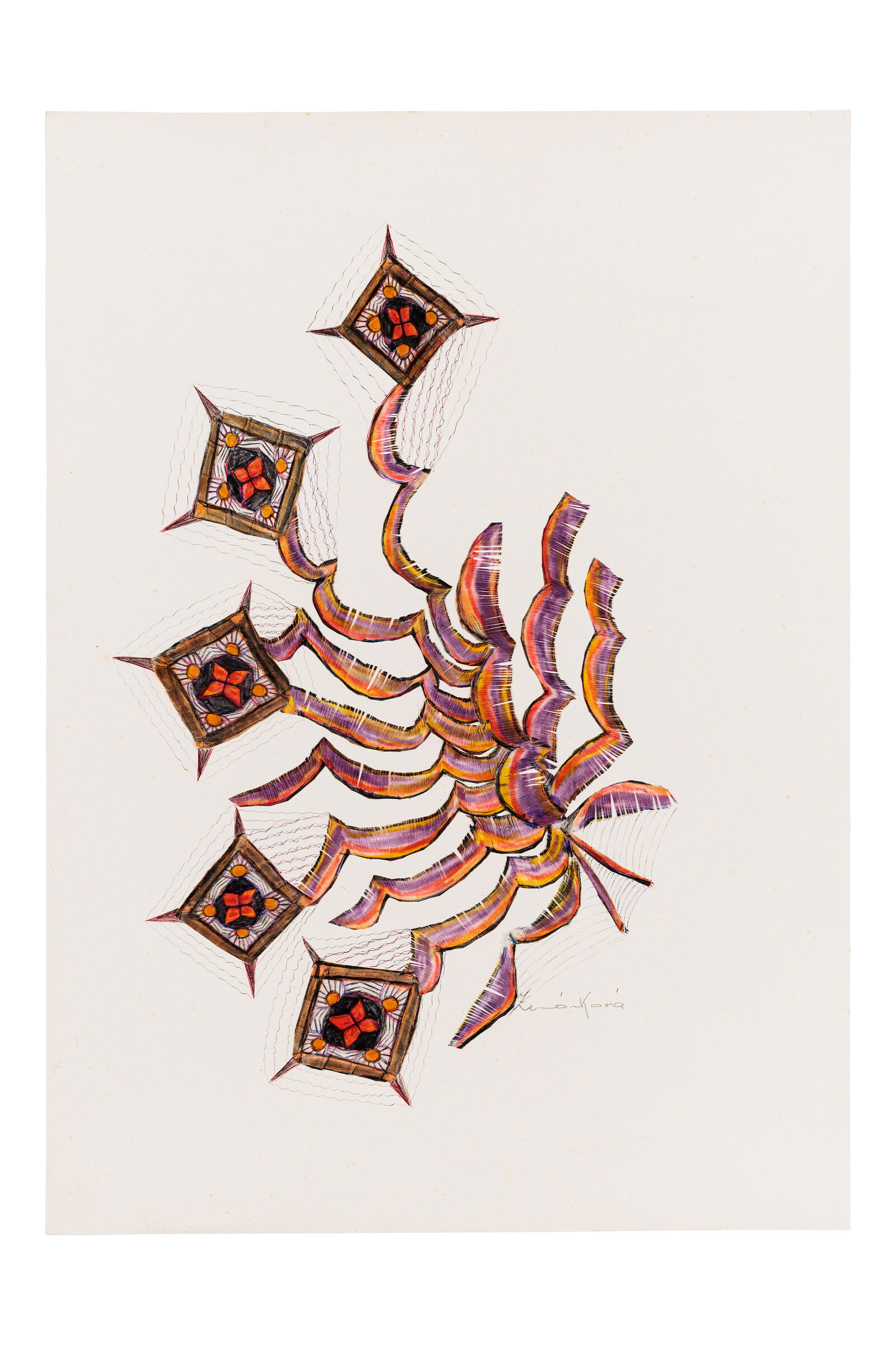 “I always arrive at something new out of desperation.” This was Anna Zemánková’s description of how she began to make drawings in satin when she ran out of paper. The resulting collages use textile colors, ballpoint pen, and acrylic to create the shapes of flowers and plants. They are tender and surprising, a new and shimmering nature. Zemánková, born in Austria-Hungary in 1908, was self-taught: a dental assistant who began making art after a bout of depression following the death of one of her children. Drawings of flowers might traditionally be defined as “women’s work”; better to say that it was the conditions under which she made art—pressured to take a trade rather than go to art school, raising a family, only making work as a response to personal tragedy—that defined her labor as such.