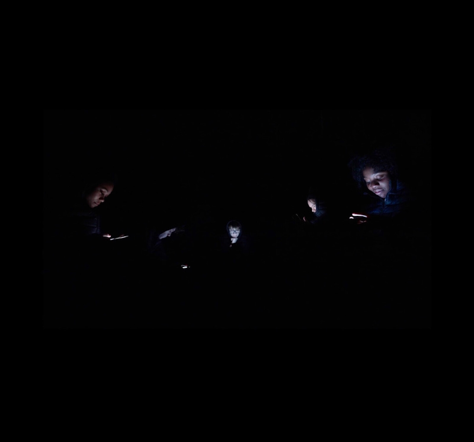 There is a very different kind of performance at Galerie Kandlhofer from Vienna hosted by Carlos/Ishikawa, showing Exit Strategy by Richie Culver, where viewers stand outside the gallery and peep through a glass to see a darkened room with a group of young teenagers (child actors) sitting still, glued to their phones—a familiar site made abnormal and uncomfortable by glaring at it through a sliver of glass, into the dark. Also at Carlos/Ishikawa: paintings by Libasse Ka, large abstractions on white canvas that are filled with art historical references—Kandinsky, Rembrandt, Twombly—but cohere to individual, quite beautiful work that wears its obsession with the painterly on its sleeve. In the adjacent room the gallery hosts Chapter NY, with bright and figurative paintings by Cheyenne Julien, and Stella Zhong, showing horizontal strip paintings that are reminiscent of Giorgio de Chirico. Different in their color palette and scale from each other and from Ka’s work in the next room, the works offer contrasting suggestions for how contemporary painting might respond to art history.