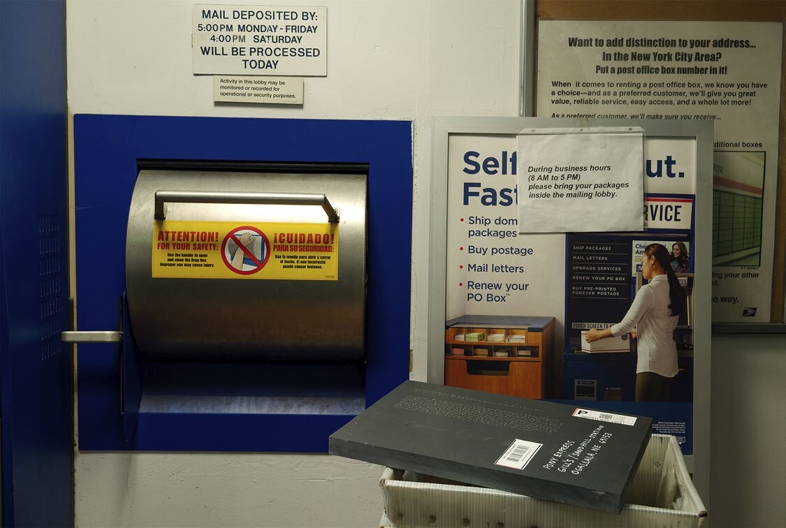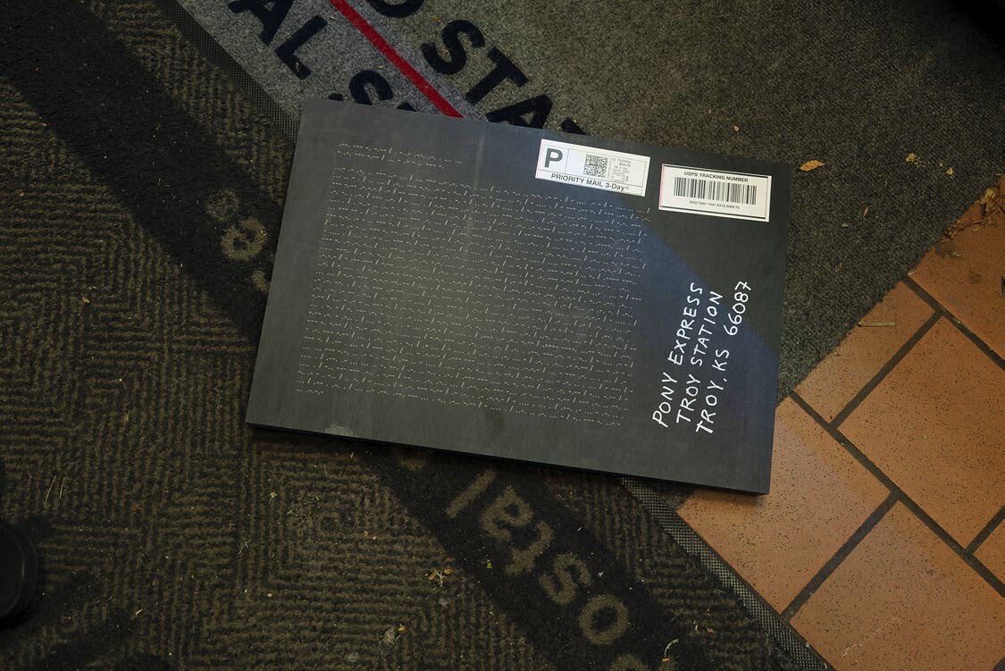 On the subway ride to Petzel, I reread Didion’s essay and couldn’t help but smile, sometimes laugh—“Was anyone ever so young?,” she writes of her first days in town. When I look back at a decade in New York—the galleries where I never missed a show, the galleries I loved and closed, the museum exhibitions that formed me and the ones I accidentally skipped (and sometimes still pretend I didn’t)—what comes through is the works of artists that stayed with me. I discovered new artists at galleries I’ve been to before: José Manuel Mesías at Lubov (brought by Apartamento, Havana), Maria Montero at Simon Preston (hosting Sé from São Paulo, where Montero is the director, a brave and conscious reflection of how different ways to participate in art can collide). And some of my favorite pieces were by artists I already knew, like Filipovic’s work, which I haven’t seen in years though I thought about it often, only to encounter a small drawing of a toucan, complicating what I thought I remembered from other shows of hers. At Simone Subal, two pieces by Frank Heath, whose work I’ve seen at the gallery before: Fixed Window (2011), a 38-minute sound piece in which a man calls numerous businesses recounting how overnight someone replaced all his windows with stone slates, is accompanied by a sculpture of a stone slate encased in glass. On the phone, he tries to explain what happened. “That’s strange, very strange,” a woman at a glass repair shop says. “I believe you,” she confirms. “Numbers Station for The Pony Express” (2018) are two photographs of slates sent through the US Postal System laser-etched with information in Morse code about the stations of The Pony Express, a relay horseback mail-delivery system between Missouri (it originated in Heath’s hometown) and California, which lasted only a year, between 1860–61. The sculptural objects are postmarked to the defunct Pony Express stations. The two works are related: both involve sending something—an object, an idea, a call for help—out into the world, knowing it’s bound to be lost.