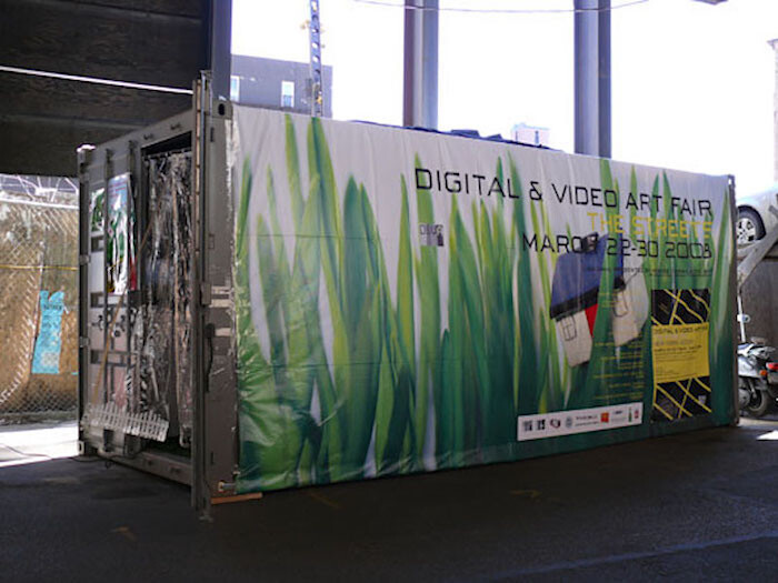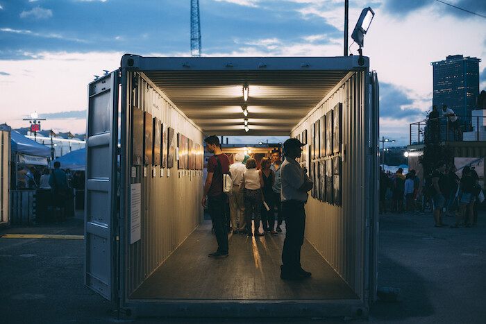 The containerized gallery isn’t a destination so much as a vehicle. The shipping container, for art and otherwise, is a logistical solution—readymade, modular, cheap, deployable, and revocable. At Documenta 14 in Kassel, when organizers needed a ground level entrance for art displayed in a disused underground train station, they topped the old stairwell with a container. (“The lower level suggests a point of transit,” read the press materials, “in this case, of artworks that have perhaps just arrived or are about to depart.”) Elsewhere, as with Art Positions, the container offers flexible access to the more staid, brick-and-mortar nodes of commerce. The Hot Box container gallery project in Phoenix, for instance, opened on gallery row in 2016. In New York, the DiVA Video Art Fair (2005-2008) included DiVA Streets, a handful of containers placed in “strategic areas of Chelsea.”5 Nearby, the Photoville fair, annual since 2011, stacked containers into a dockside display of documentary media—if not of globalization itself, then of images of globalized society.