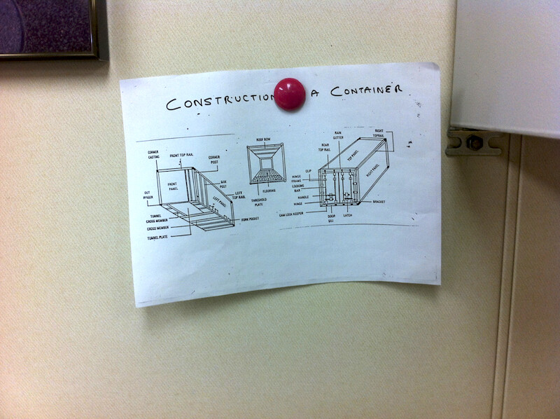 Yet in this, too, the container’s sheer “neutral” materiality might broker denial. Art’s adoption of the shipping container expresses honesty and cynicism: art is a business, art/artists are commodities, so why not inhabit the bare symbol of logistical abstraction? Perhaps this much is old news. And perhaps, where we’re attuned to globalization’s considerable human cost, we remain in thrall to the container’s power to abstract the most uncomfortable congruencies into a 40-foot block of forgotten space.