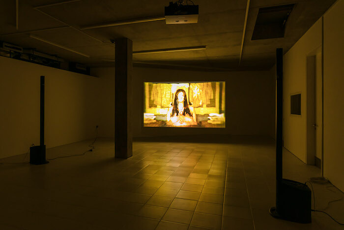 Harmonic COUMaction (2017) offers autobiographic disclosure as photographic slide show, beginning with black-and-white scenes of the artist’s childhood which morph and melt into later incarnations with band members and friends, blank images of unpeopled streets and buildings and, finally, street performances. This personal archive holds out the promise of a glimpse behind the more constructed images of musician, artist, or pornographic model represented upstairs. But the features in the photographs dissolve into uncanny obfuscations before it is possible to reflect upon their backstories. Indeed, the film’s unsettling digital transformations only draw attention to the voyeurism inherent to our invasion of the artist’s private realm: as if the viewer’s gaze is responsible for their facial disintegrations.