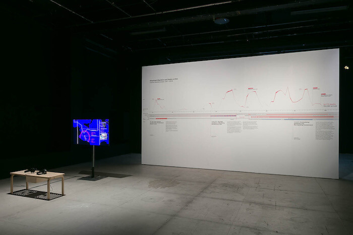 After a while, I get stuck on the show’s reliance upon visual communication. Unlike the computer screen (much of Forensic Architecture’s work is available online), galleries allow for experimentation with sound, scent, and touch. Despite the group’s understanding of buildings as “sensors,” however, these installations fail to harness the exhibition as a sensory experience.