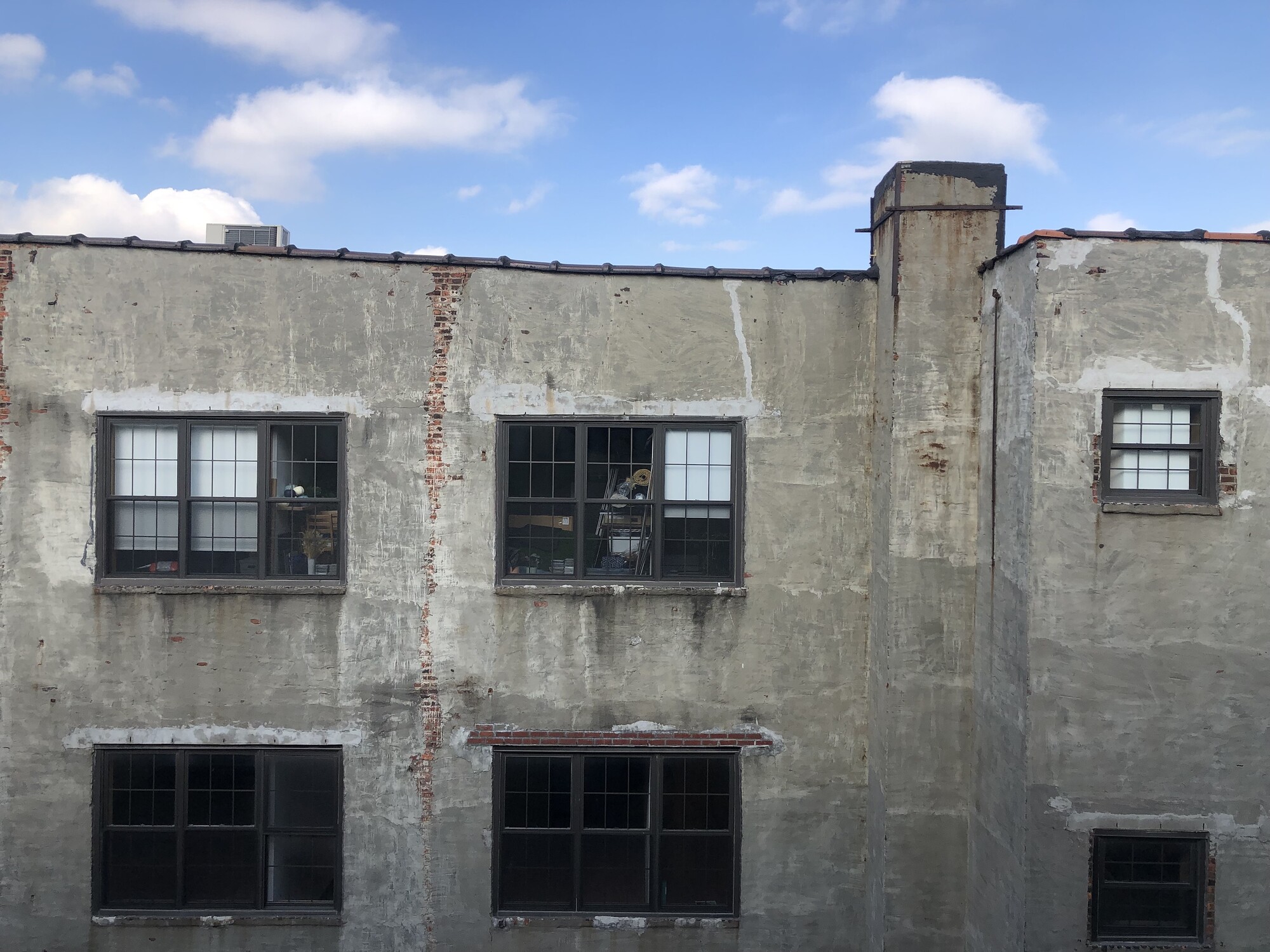 The photograph accompanying this month’s letter comes from the New York studio of the painter Amy Sillman. In the course of our correspondence, during which we discussed the nature of the brief and considered the relative merits of different views, Amy mentioned that she has always associated elements of New York painting with the “glum and ugly and shabby and tattered” surfaces of the city’s buildings and sidewalks. When the above picture arrived we suggested that—in its off-geometric composition, its scratched plasterwork and exposed layers—it communicates some of the relationship between the world and the work that this series of snapshots from artists’ workspaces hopes to foreground.