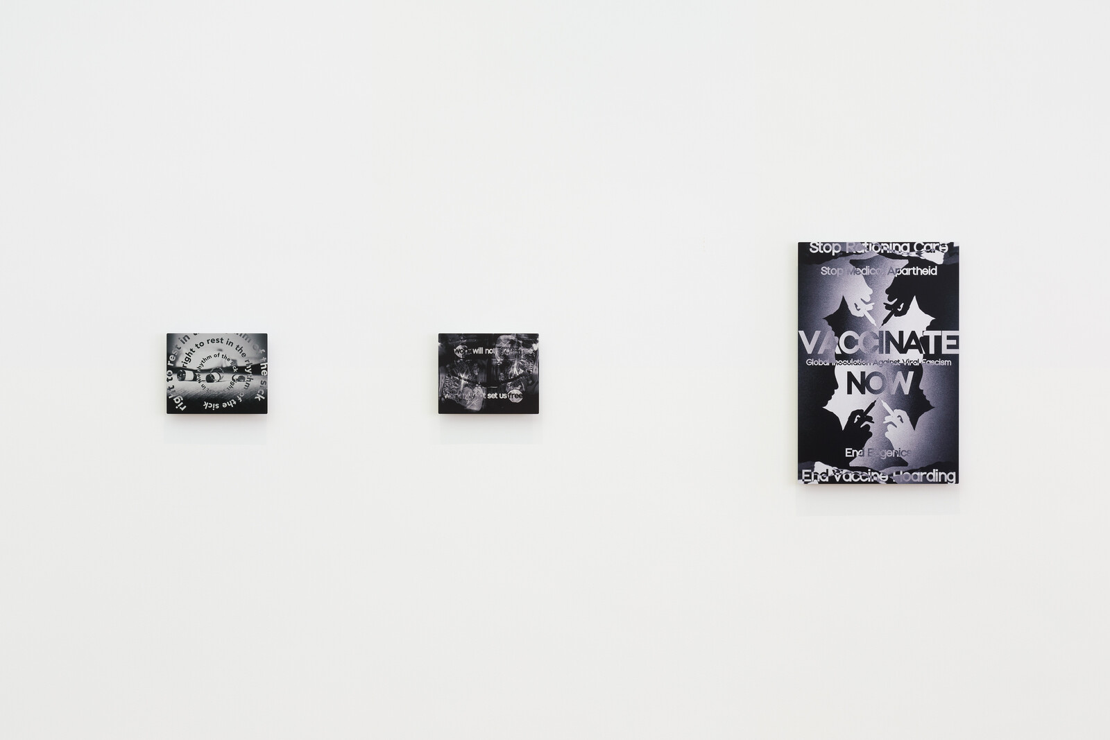 However, across the room is the work of the Brothers Sick (Ezra and Noah Benus) who, thankfully, make the connection in their directly powerful Right to Rest in the Rhythm of the Sick/Work Will Not Set Us Free (2021). The disabled brother artists, through their spiraling text, transform by countering the eugenicist idea of the disabled being “useless eaters,” affirming our right to rest while questioning the capitalist work ethic underlying much disability oppression. This work is especially important in the current context of the Covid-19 pandemic, which has disproportionately affected the disabled.