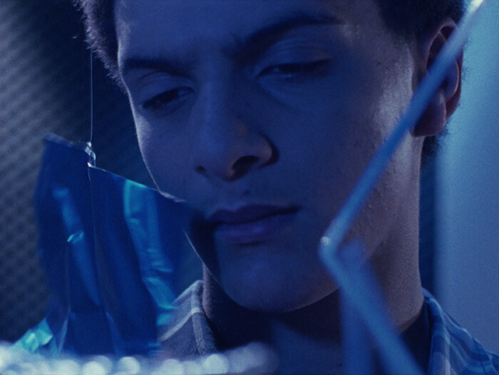 The setup is simple. A mother and son are housebound synesthetes. Theirs is an interior world of wonder, a microcosm of things and materials that open a universe of rich associative and intensely poetic sensory experience. A red jumper, a cracked eggshell, a ball of wool: each cause a rush of psychophysiological associations for the reclusive pair when touched or seen. Wisely, Martin leaves space for the viewer to intuit these associations; we are not shown what it is that a thing is like. For example, there are no suggestive hard cuts from fingers running across the surface of some material to fingers running through grass. Instead we are able to forge empathic links by virtue of scenes in which the actors playing mother (Carolina Valdés) and son (Myles Westman) use a recognizable gestural vocabulary of awe and reverence in relation to things and each other. This is essentially how the reception of film works for viewers. An actor does something on screen we can empathize with, like laughing or crying, and then, if we’re able to suspend disbelief, we feel happy or sad, too. Psychoanalysts might describe this as a process of identification; neurologists might point to the existence of mirror neurons. Whatever the case for us, it is clear the boy and his mother feel a deep, borderline erotic connection, and this heightened sense of each other crucially extends to textures, hues, and inanimate materials—a sense that is eventually transferred and awakened in the viewer.
