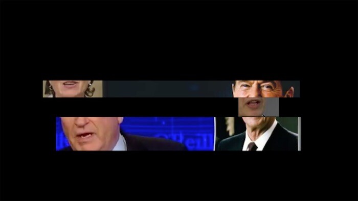 Happy? Ronaldreagan. Hungry? Ronaldreagan. Afraid? Ronaldreagan. Invoke him often enough and The Gipper’s name passes from rote signification into a malleable abstraction. All too easy—as David Snyder demonstrates in “2THNDNL” with the video Ronald Reagan, Fathers & Sons (all works 2016). Dozens of jaws, clipped from TV’s talking heads, from Paul Ryan to Barack Obama—sometimes comped below the forehead of another to form a rhythmic exquisite corpse—speak, ad nauseam: “Ronald Reagan.” The syllables slur toward pure intonation. On a wall opposite this video is a second: Swansong, a supercut of snarling dogs. The cacophony, and the numbness that follows, figures our present national discourse. Never mind the gulf between that pragmatic movie cowboy and today’s nativist publicity hounds. Love him or hate him, this is a Reagan even apolitical animals can understand.