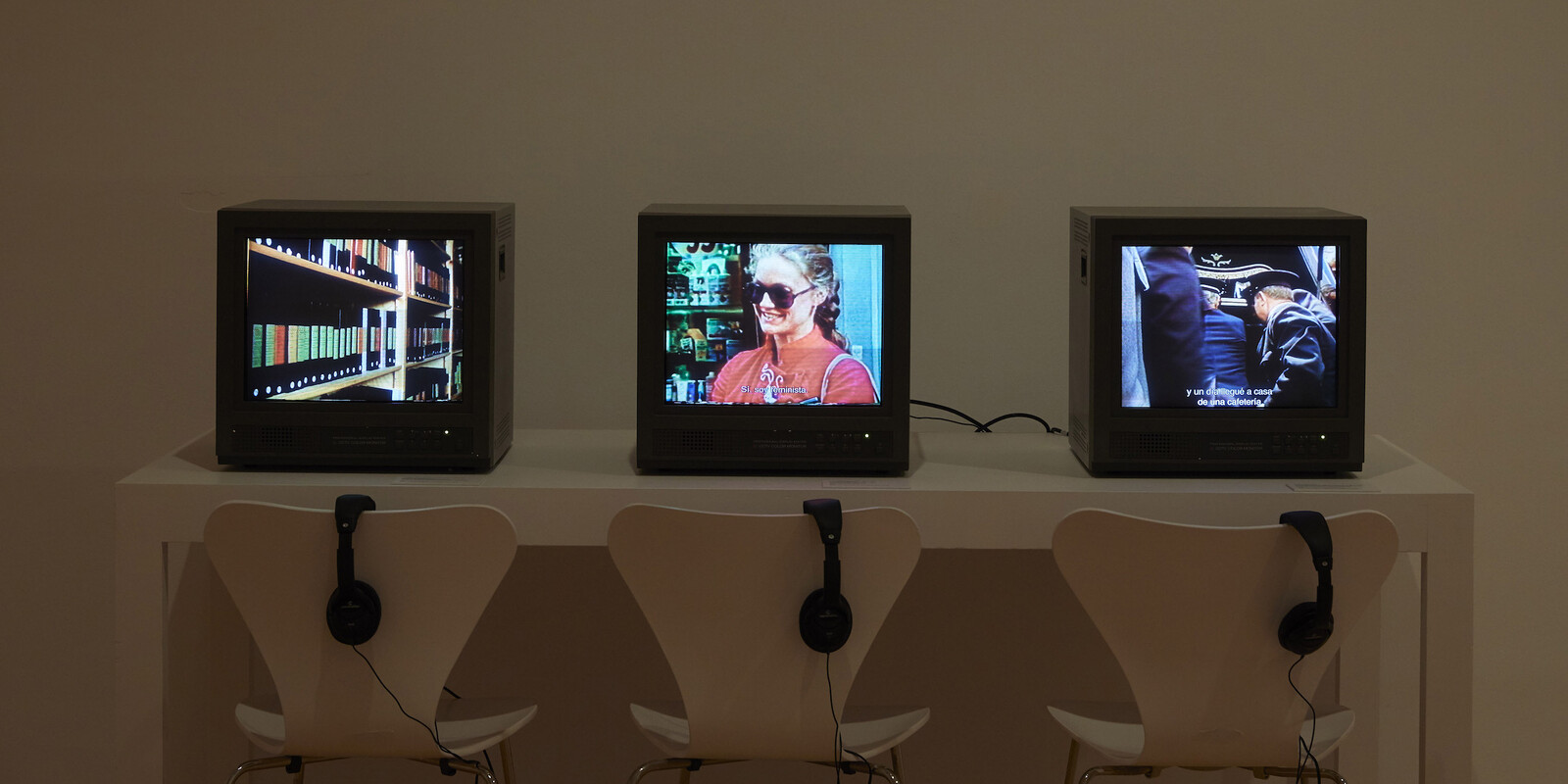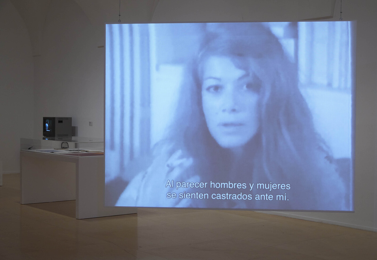 Curated by Nataša Petrešin-Bachelez and Giovanna Zapperi, the show—which opened in July 2019 at LaM-Lille before moving to its current, rather hidden location on the third floor of Reina Sofia’s Sabatini Building—is the result of several years of research. It reactivates, among much else, the materials produced and preserved by the Centre audiovisuel Simone de Beauvoir (SdB), which was opened in Paris in June 1982 by the joint initiative of Delphine Seyrig, documentary director Carole Roussopoulos, and translator Iona Wieder. In 1975, the three friends had formed, together with Nadja Ringart, the feminist video collective Les Insoumuses, recently celebrated by the documentary Delphine et Carole, Insoumuses (2019), directed by Callisto McNulty, Roussopoulos’s granddaughter.
