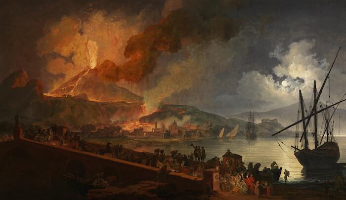 I had forgotten about The Day After until the North Korea/US missile crisis brought it back to mind with a bang. Aired in November 1983, the American TV movie terrified over 100 million viewers with its graphic images of a nuclear conflict between the US and the Soviet Union, leading to the manmade destruction of humanity. The poster image of the giant mushroom cloud, towering over the horizon, was everywhere. Maybe every era has a different cloud to fear, the current one being the capitalized Cloud propelled by Capitalism. And maybe that’s why the cloud “like an umbrella pine” that erupted from Mount Vesuvius in 79 AD and buried Pompeii under flaming rocks, pumice, ash, and sulfur gases still fascinates us. As evergreen disaster story and hyperfictionalized icon of a past apocalypse, it exorcises our fears of termination.