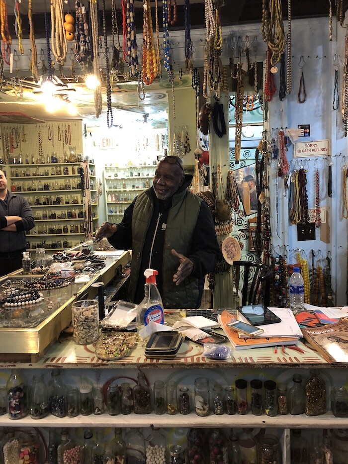 The next day, Culture Lab brought us (the press) to Dabls MBAD African Bead Museum. The walls outside are festooned with colorful mosaics of broken mirror, wood, concrete, and other materials. Inside, a truly beautiful taxonomical galaxy: countless varieties of beads dangling on necklaces or housed in vials, colors from red-earth to azure to bright banana. Olayami Dabls, who opened the museum in 1985, works to illustrate how beads don’t only function as pure ornamentation, but have long been used in African material culture as means of communication. Outside the museum, there’s several huge outdoor installations that employ the detritus of industry and urbanity to explore notions of difference (“Iron Teaching Rocks How to Rust”), the history of the slave trade, and African languages. Less a crisis of beauty, more beauty in the face of crisis. Dots, symbolizing ancestors, are a common motif throughout.