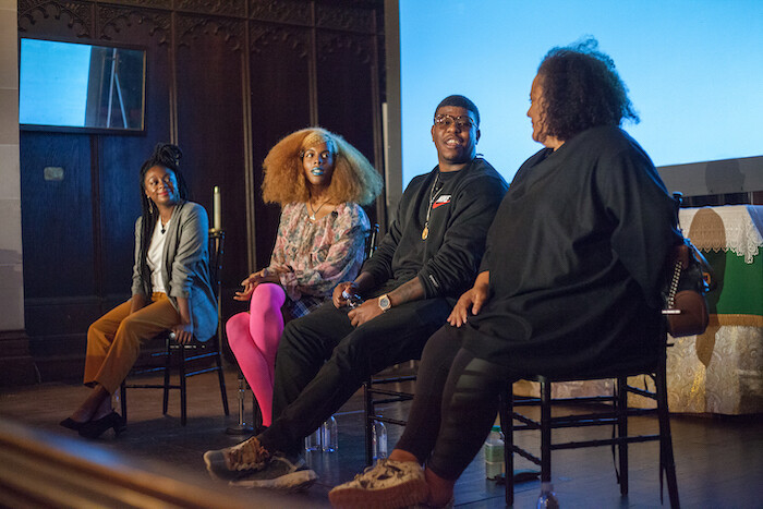 After dream’s we headed to the Church of the Messiah, a nontraditional episcopal church in Detroit’s East Side. The panel, titled “Seeing and Being Seen,” included dream, the artist, DJ, and writer Juliana Huxtable, and Jon Gray, the co-founder of Ghetto Gastro, a collective of chefs which he describes as a “Black Power kitchen.” Moderated by Jazmine Hughes, associate editor of the New York Times Magazine, there was a discernible chemistry among the participants, a mix of humor and engrossing discourse, and reflections on the struggles—but also the triumphs—of black, trans, and female communities.