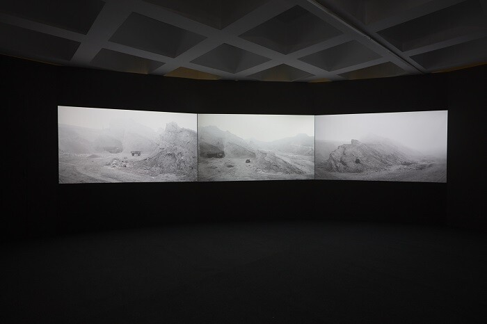 The summit’s film programme oscillates poetically between the past and the future—what you can and can’t see. The combination of older and new films works well as a series of thoughtful and slightly melancholy meditations on the question of memory, and in what sense we can still connect with the past. The programme, delicately put together by Shanay Jhaveri (Assistant Curator of South Asian Art at the Metropolitan Museum of Art), alternates between textured narratives of form and rhythm, abstracted in their flickering pulse, and fragmentary streaks of bygone times. Soon-Mi Yoo’s Dangerous Supplement (2005) is a film collage of US military footage from the Korean War, but there is little destruction or violence. We are not provided with an objective account of what happened, but rather with fragments of what US soldiers saw: a group of children dancing, trees blowing in the wind. The subjective point of view is even more pronounced in Kohei Ando’s My Collections (1988), which organizes the world into personal archives of everyday objects, or in Ben Rivers’ mysterious Things (2014). The films highlight how the idiosyncratic, the counter-script, might bring us closer to the intimacy of past experience.