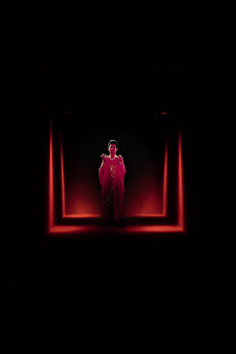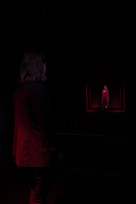 Dominique Gonzalez-Foerster takes a similar, yet slightly different path. She does not address history outside of fiction. She only addresses the fictional personas of three female artists, isolating the roles performed in the theater, the opera, and on the cinema screen, and animates them in the art space. In this regard, the exhibition is not only an homage to the artists and the arts; it provides them with a safe house in the exhibition space. It is worth protecting that, even when you have to step into the dark in order to do so.