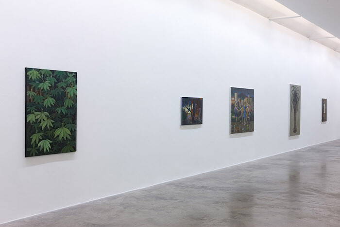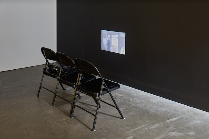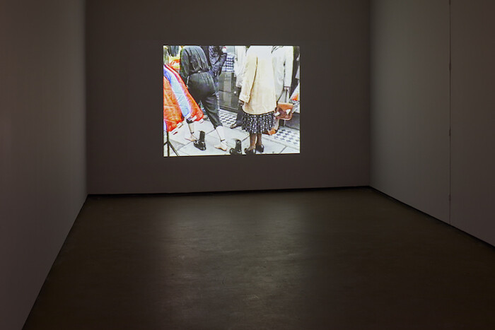 By laying out on a shroud the flora that flourished in the Hanging Gardens of Babylon, an artist whose family was displaced from Tehran by the Iran-Iraq War suggests that no cultural site—whether garden or gallery—is ever insulated from the world. That conflict bleeds into every “safe” space is reinforced by Ghost (2013), a compilation of video clips in which US servicemen surprise their partners by returning early from active duty. Cast low onto a corner wall by a projector on a folding chair, the fraught reconciliations serve only to highlight the fear and resentment that pervade the home in the soldiers’ absence. The video is cleverly complemented by Mona Hatoum’s Roadworks, screened here as part of an initiative pairing Akhavan with an artist who has influenced his practice. This edited document of a 1985 performance—for which the Lebanese-born Palestinian artist walked barefoot through south London, dragging behind her a pair of Doc Martens laced to her ankles like balls-on-a-chain—explores what it means for an artist displaced by war to live amidst a community divided by simmering racial tensions. That she is followed by a jackbooted presence speaks not only to the daily intimidation of local women and minorities by bovver boys but also to the history of “stop and search” policing in London, a discretionary power whose abuse sparked the 1981 Brixton riots on the streets that Hatoum treads.1