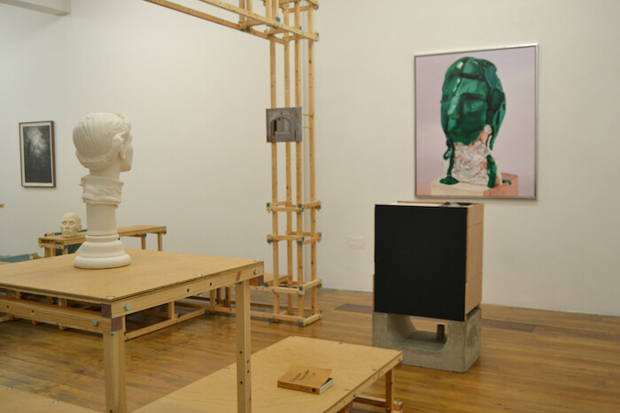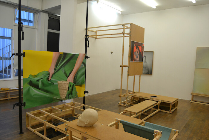 Walking through the Liberties, a local curator tells me that the same policy has exacerbated tensions between local residents and police in this enduringly working-class district to the point that she was forced to move out of the area: it was suspected that she had reported a crime (the profiling here is along class rather than racial lines, with “reasonable suspicion” aroused by a combination of accent, youth, and dress). At Pallas Projects, at the heart of a neighborhood that a Panglossian speaker at the opening insists is now the city’s “digital hub,” “Periodical Review #7” aims to generate a more cohesive sense of community among a disparate group of Irish artists. This “discursive action” presents work selected by four curators (Gavin Murphy, Mark Cullen, Rachael Gilbourne, and Kate Strain) on a clambering wooden structure which—on extruding plinths, shelves, and walls—accommodates a medley of sculptures, paintings, prints, and publications. The risk of this mode of exhibition design is that it reduces works by artists including Jesse Jones, Barbara Knezevic, and Sonia Shiel to components in a predetermined structure. Yet the architecture, precisely because it looked provisional and modular, succeeds in fostering a sense of community between works without flattening out their differences. An ambitious survey on such a small scale is necessarily unsatisfying—even when it succeeds, it leaves you wanting to know more about the featured artists—but this “Periodical Review” supplied an innovative framework on, over, and through which to understand new work.