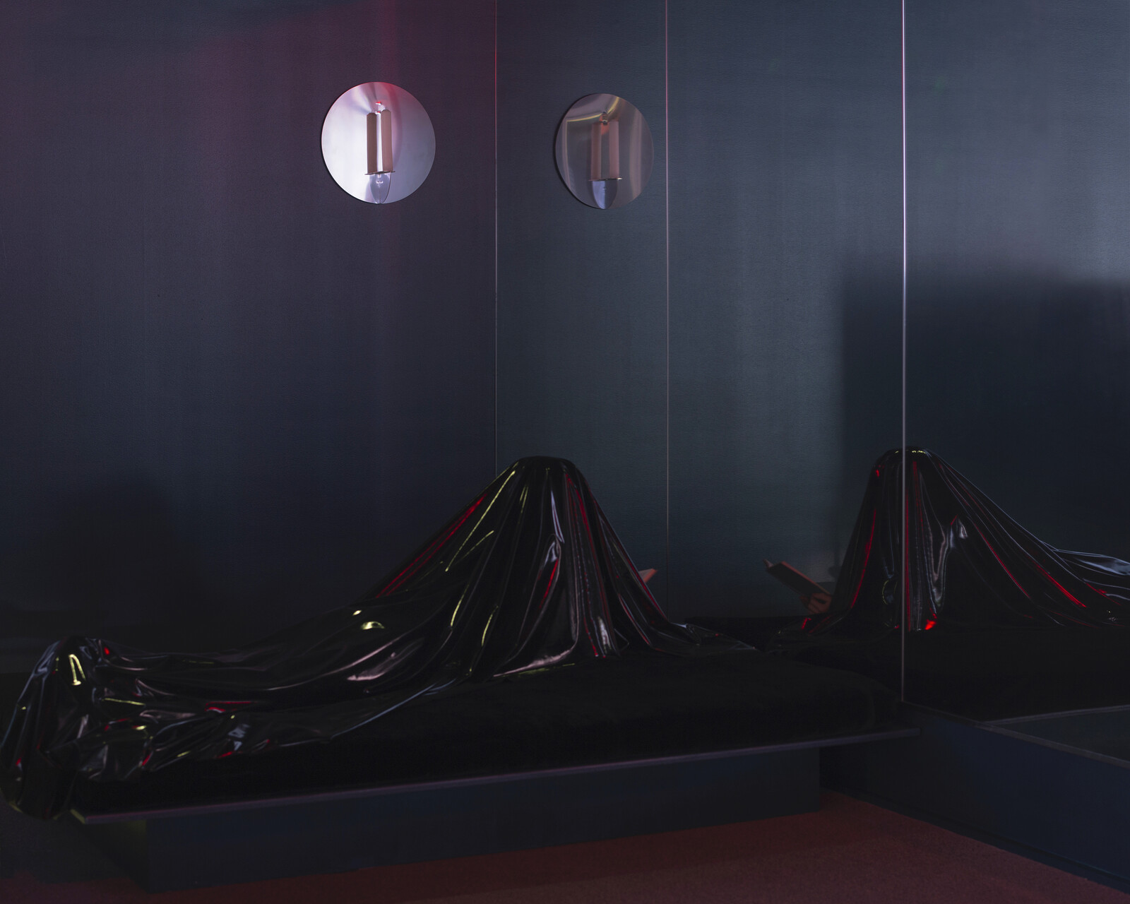 HF: The second floor evokes Woland’s apartment and includes sculptures-as-models (or models-as-sculptures) of previous spaces that have held your work, and a mysterious figure covered in what appears to be latex. How would you describe the life and agency of this space?